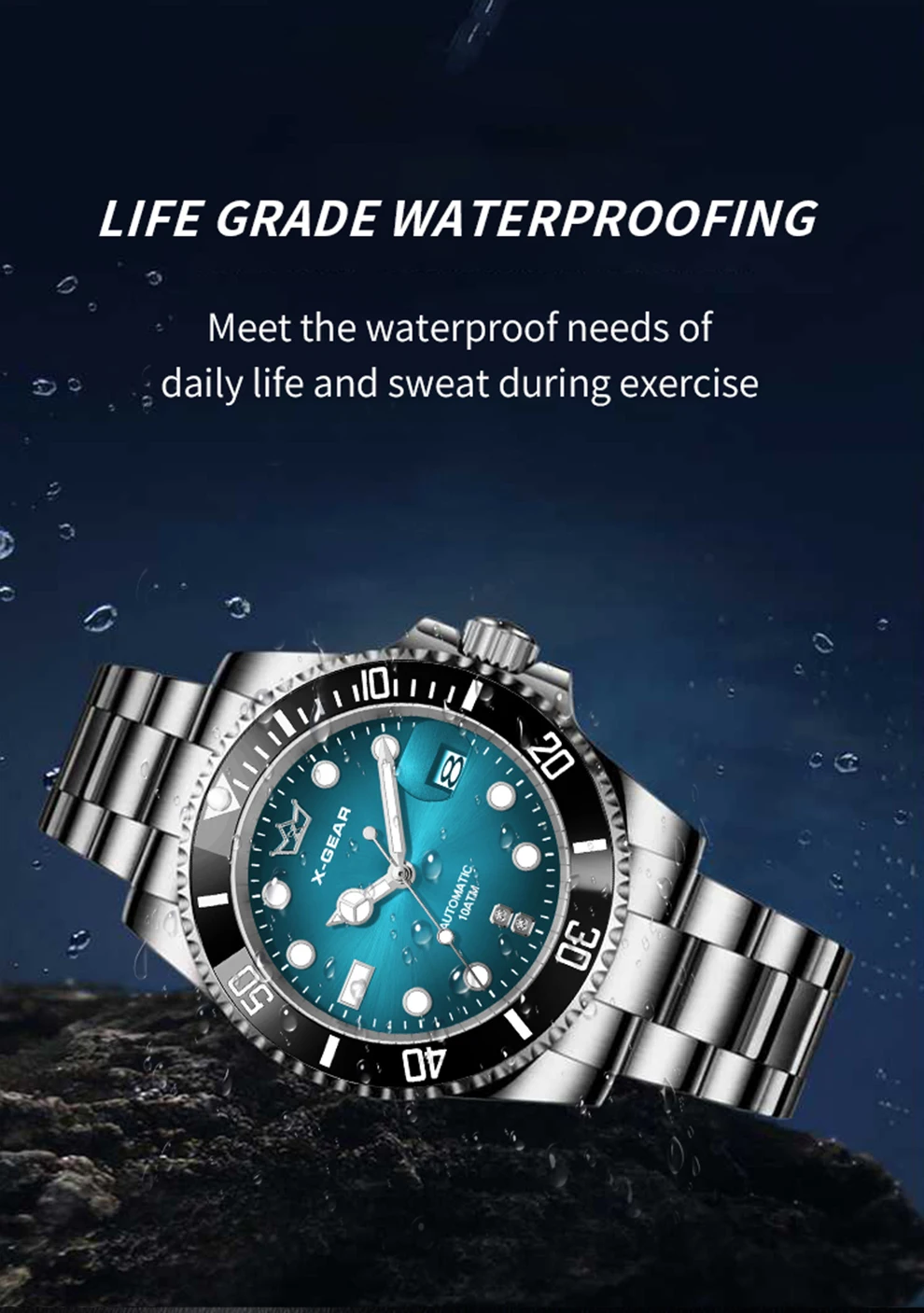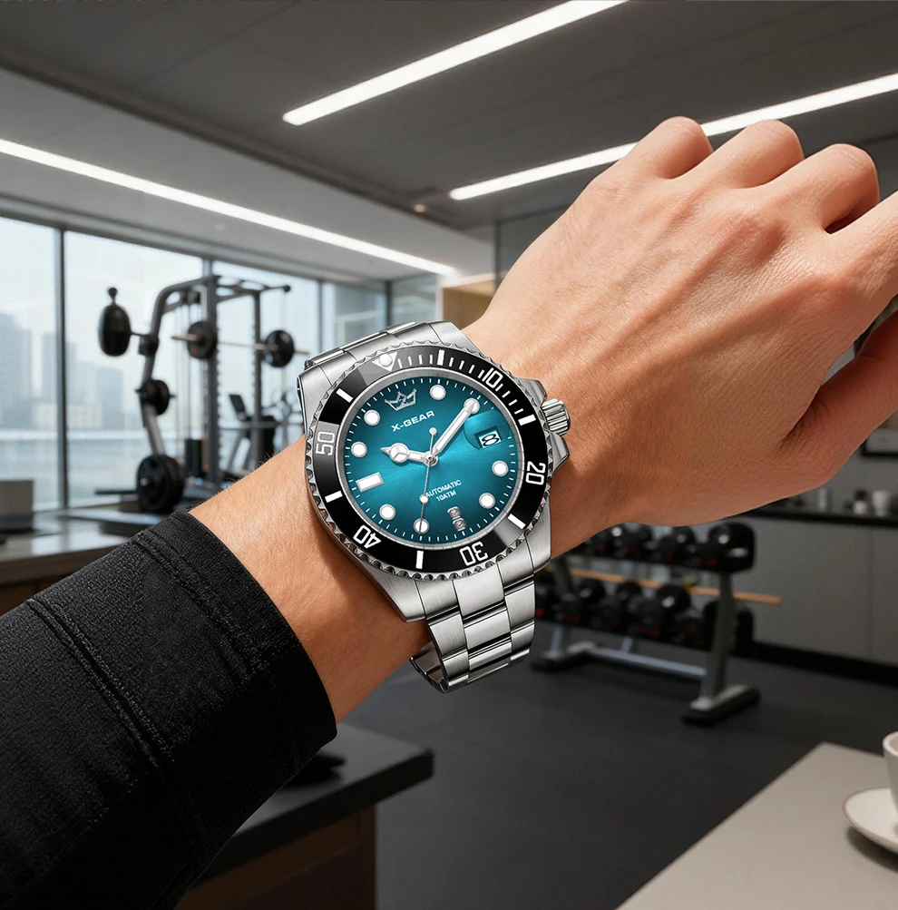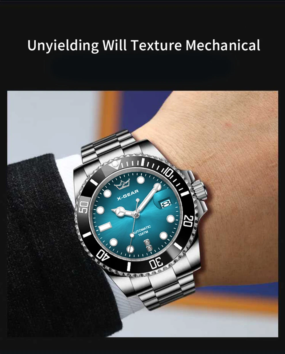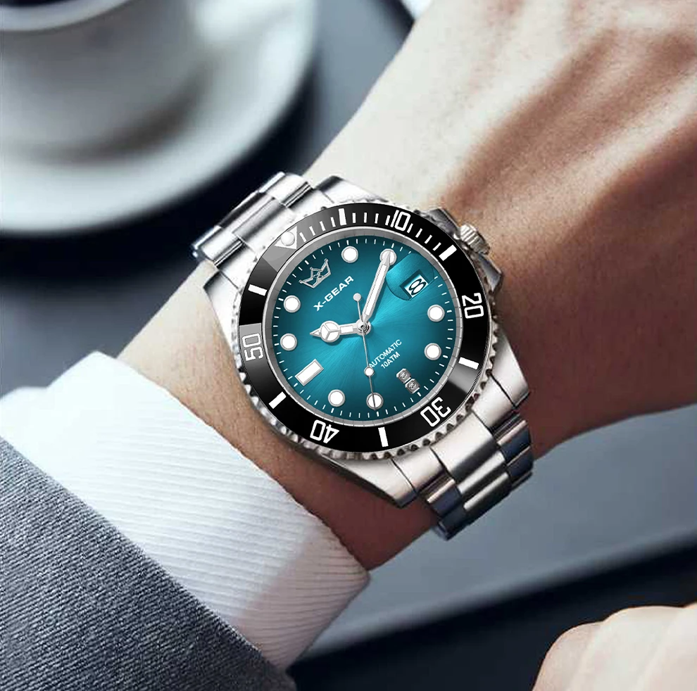 70.10$X-GEAR Men’s Mechanical Movement Classic Deep Blue Water Ghost Watch with Calendar Magnifier Stainless