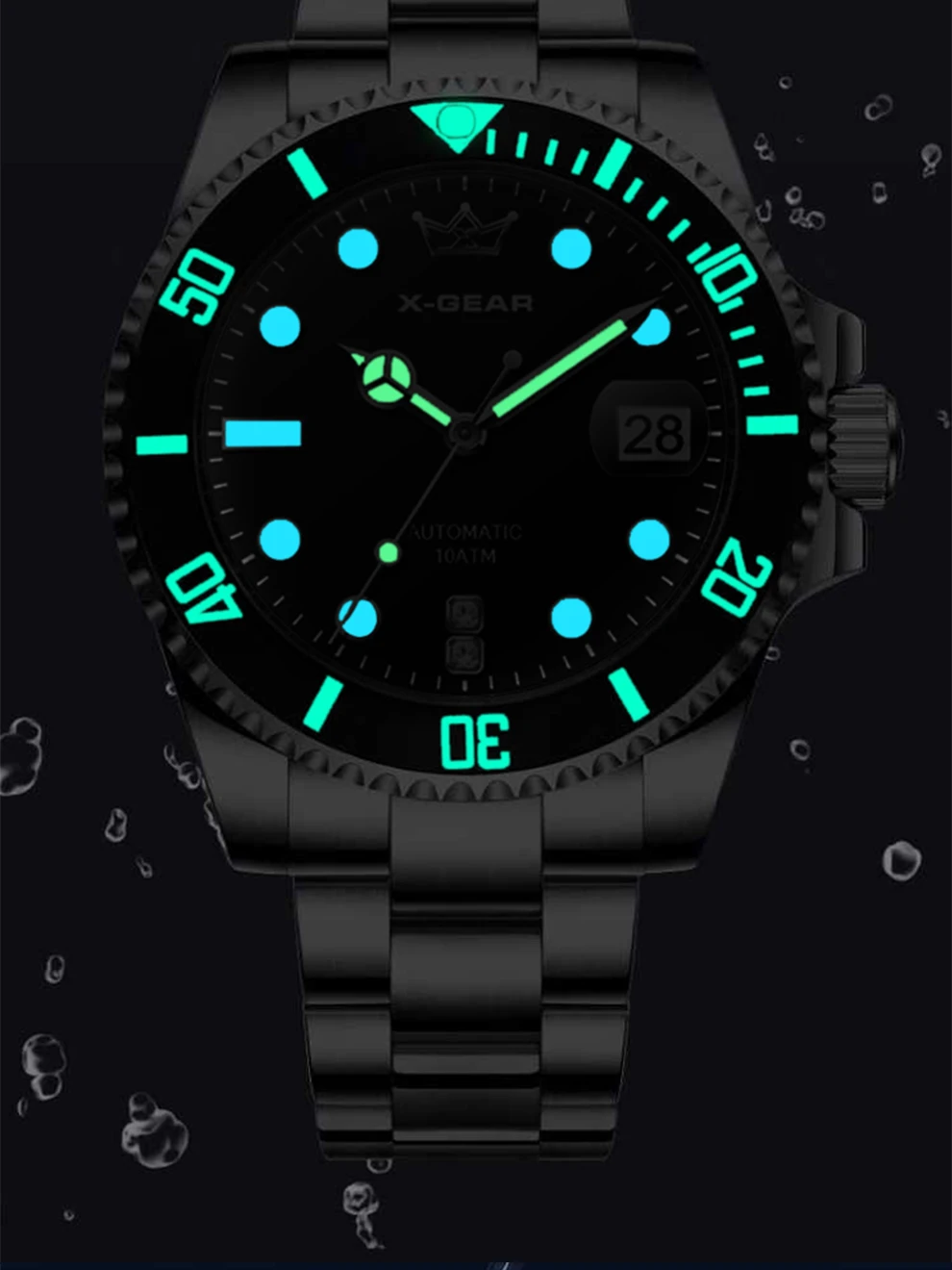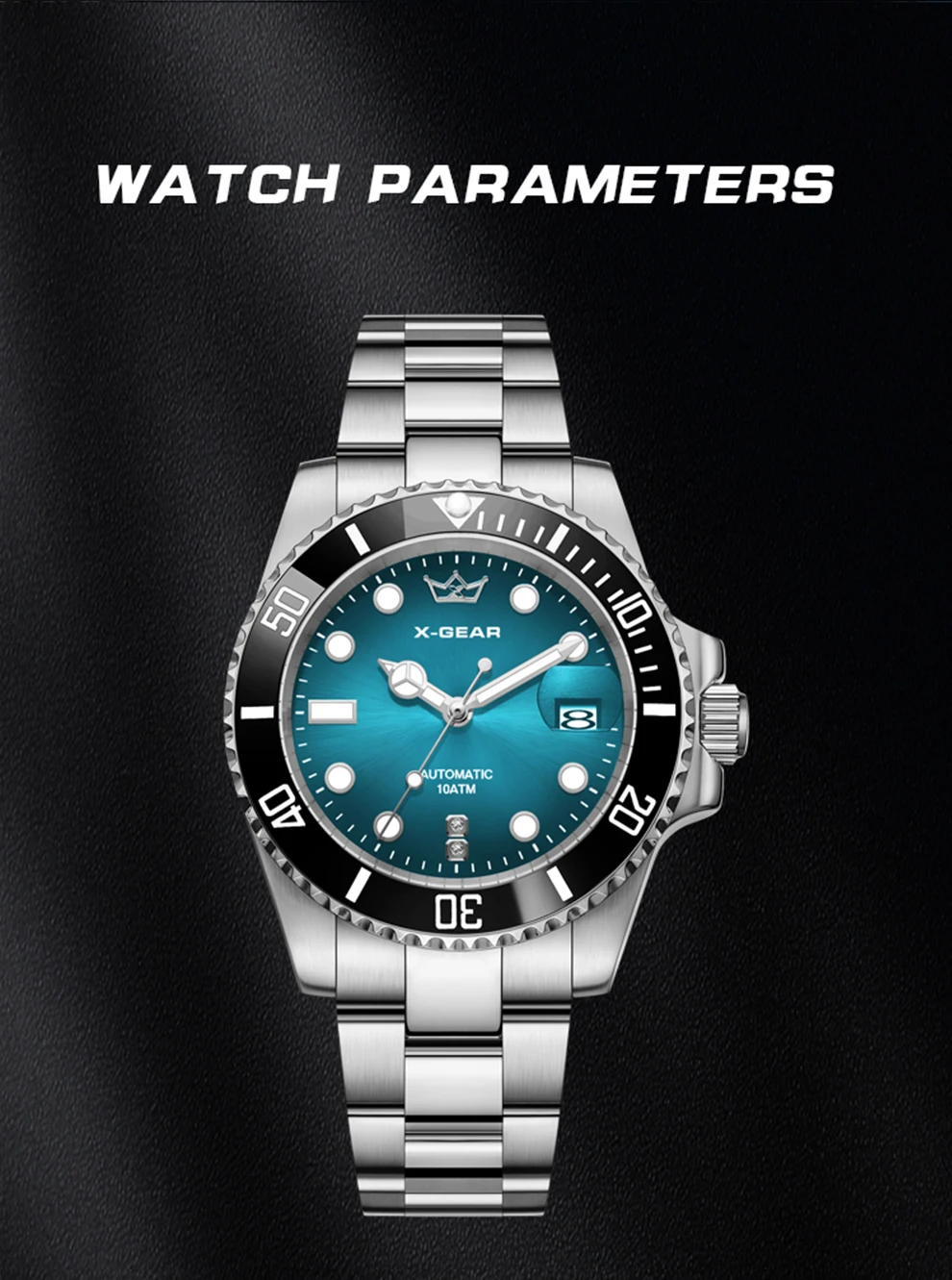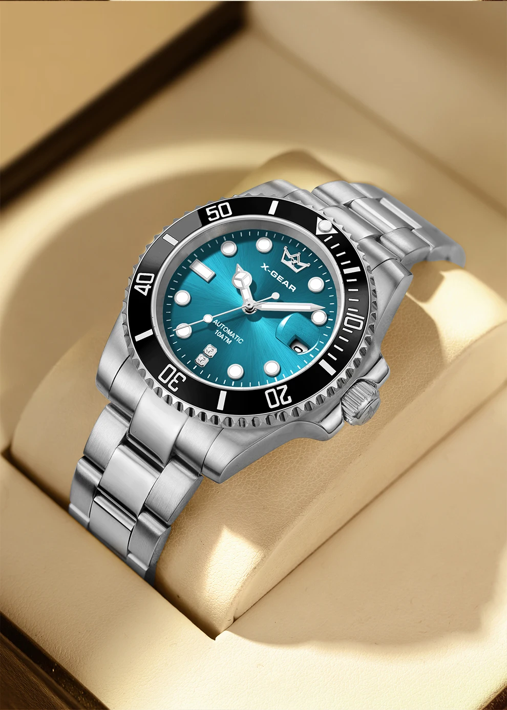 70.10$X-GEAR Men’s Mechanical Movement Classic Deep Blue Water Ghost Watch with Calendar Magnifier Stainless