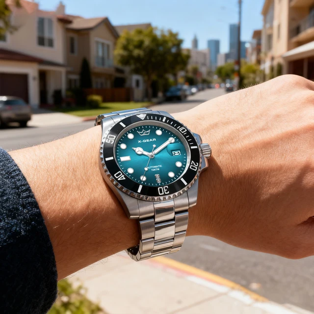 70.10$X-GEAR Men’s Mechanical Movement Classic Deep Blue Water Ghost Watch with Calendar Magnifier Stainless