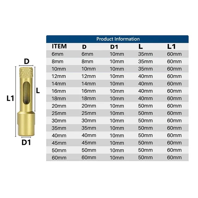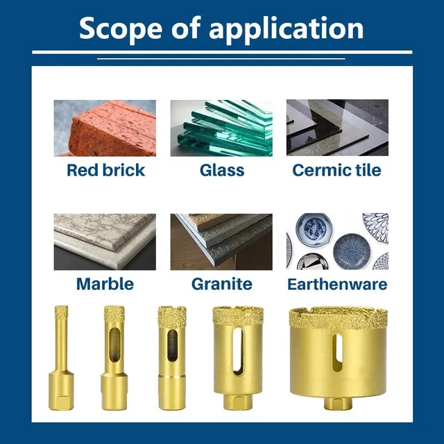 Application: Used for opening holes in marble, ceramic tiles, granite, pebbles, walls and other materials