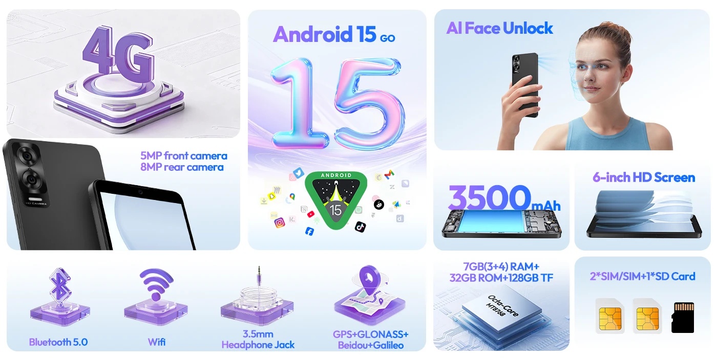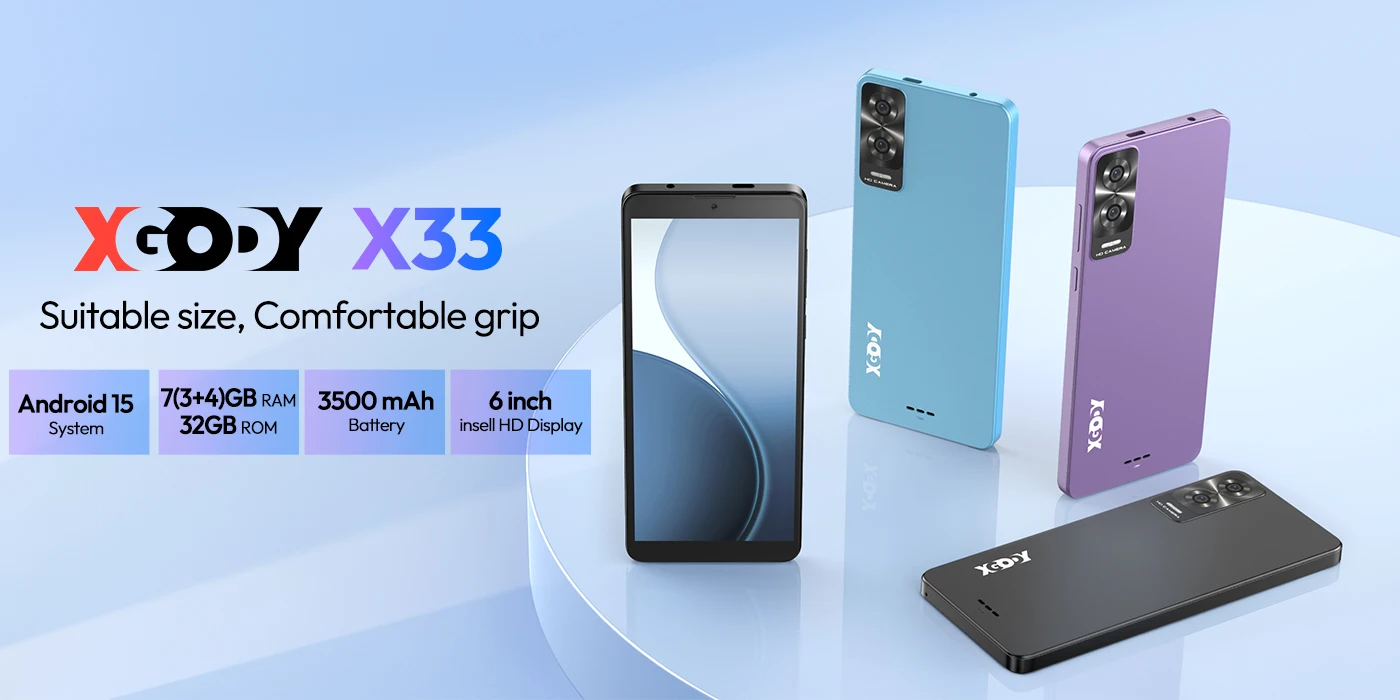 XGODY X33 Smartphone Android 15 Dual SIM Octa Core 6.0 Inch 7(3+4)GB RAM 32GB ROM Dual SIM 4G Network Mobile Phones