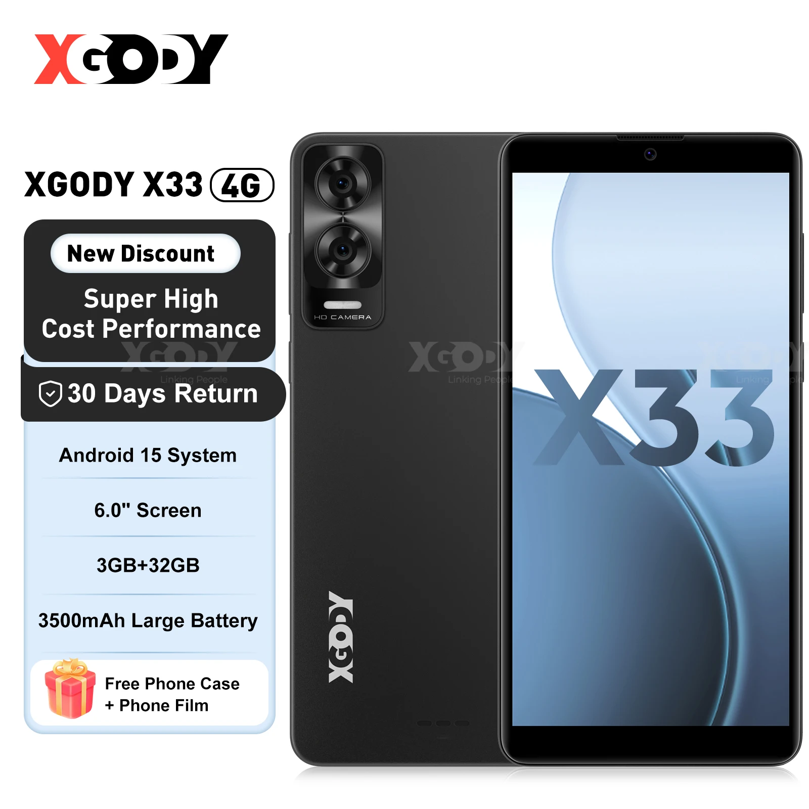 XGODY X33 Smartphone Android 15 Dual SIM Octa Core 6.0 Inch 7(3+4)GB RAM 32GB ROM Dual SIM 4G Network Mobile Phones