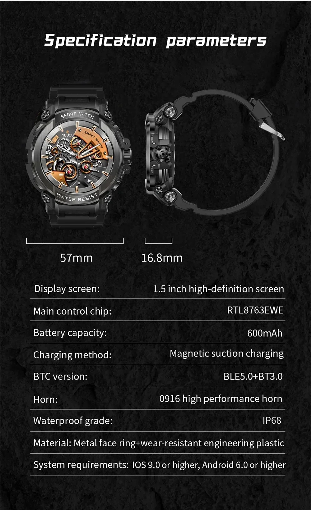 *Watch device language:Chinese, English, Russian, Japanese, German, Spanish, French, Italian, Portuguese, Polish,Persian,Vietnamese