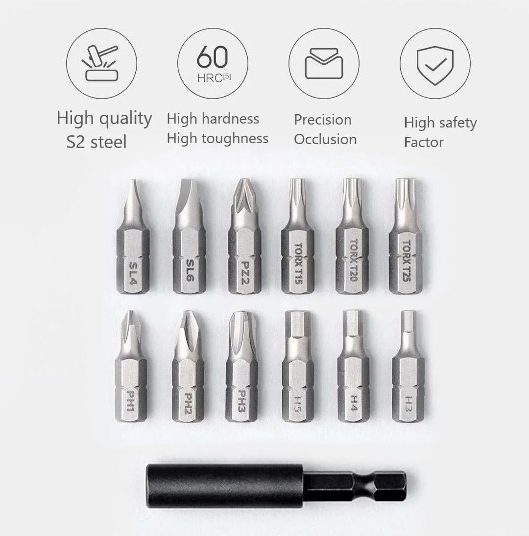 12 high-quality S2 alloy steel bits, high precision bite, hard but not brittle, tough and not soft.
