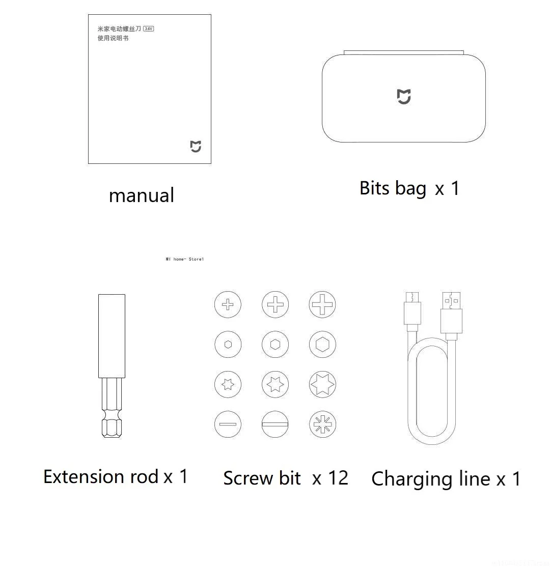 Screw Bits: PH11 PH2/ PH3;H3/H41H5; SL4/SL6; T15/ T20/T25; PZ2;
