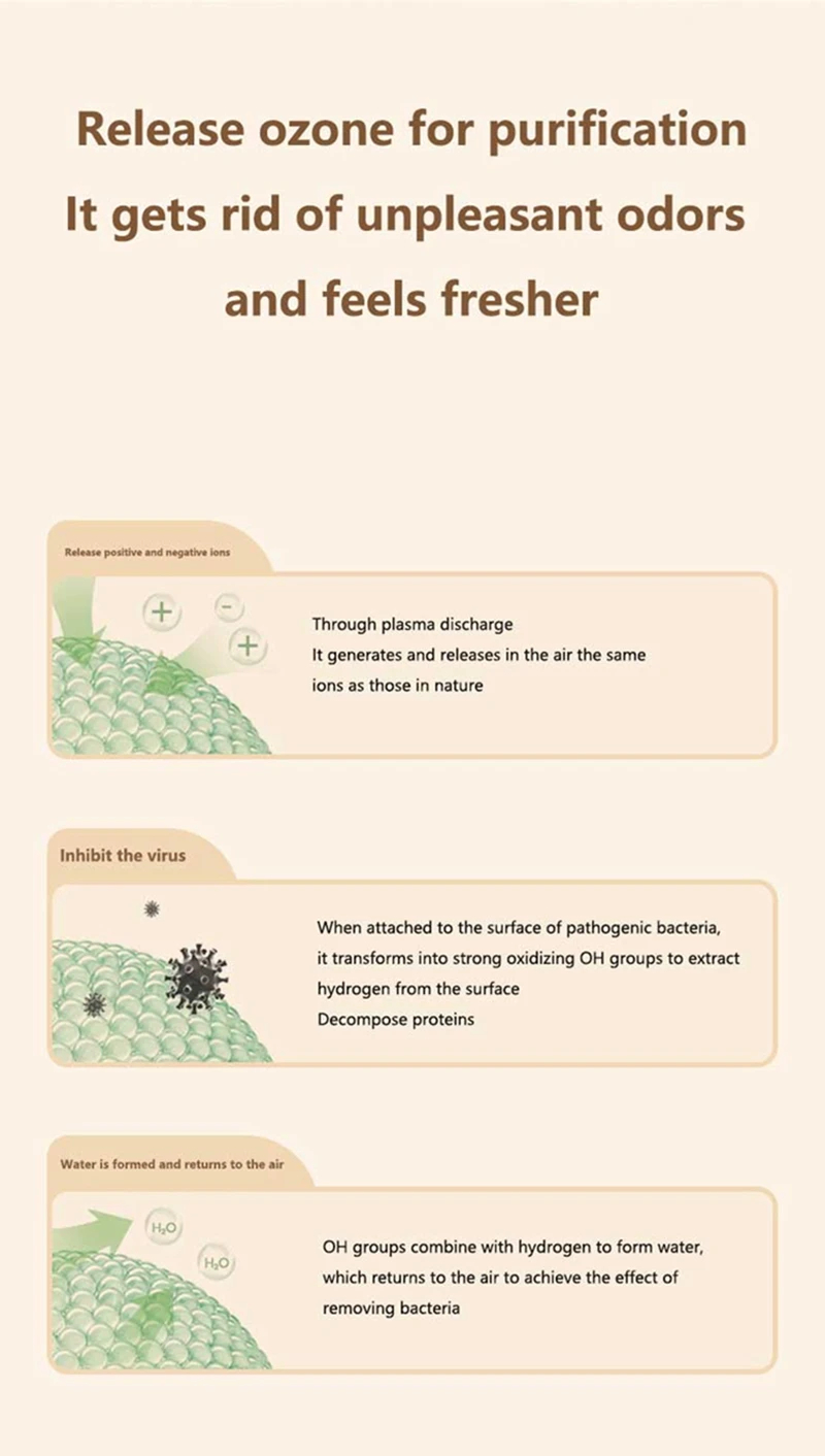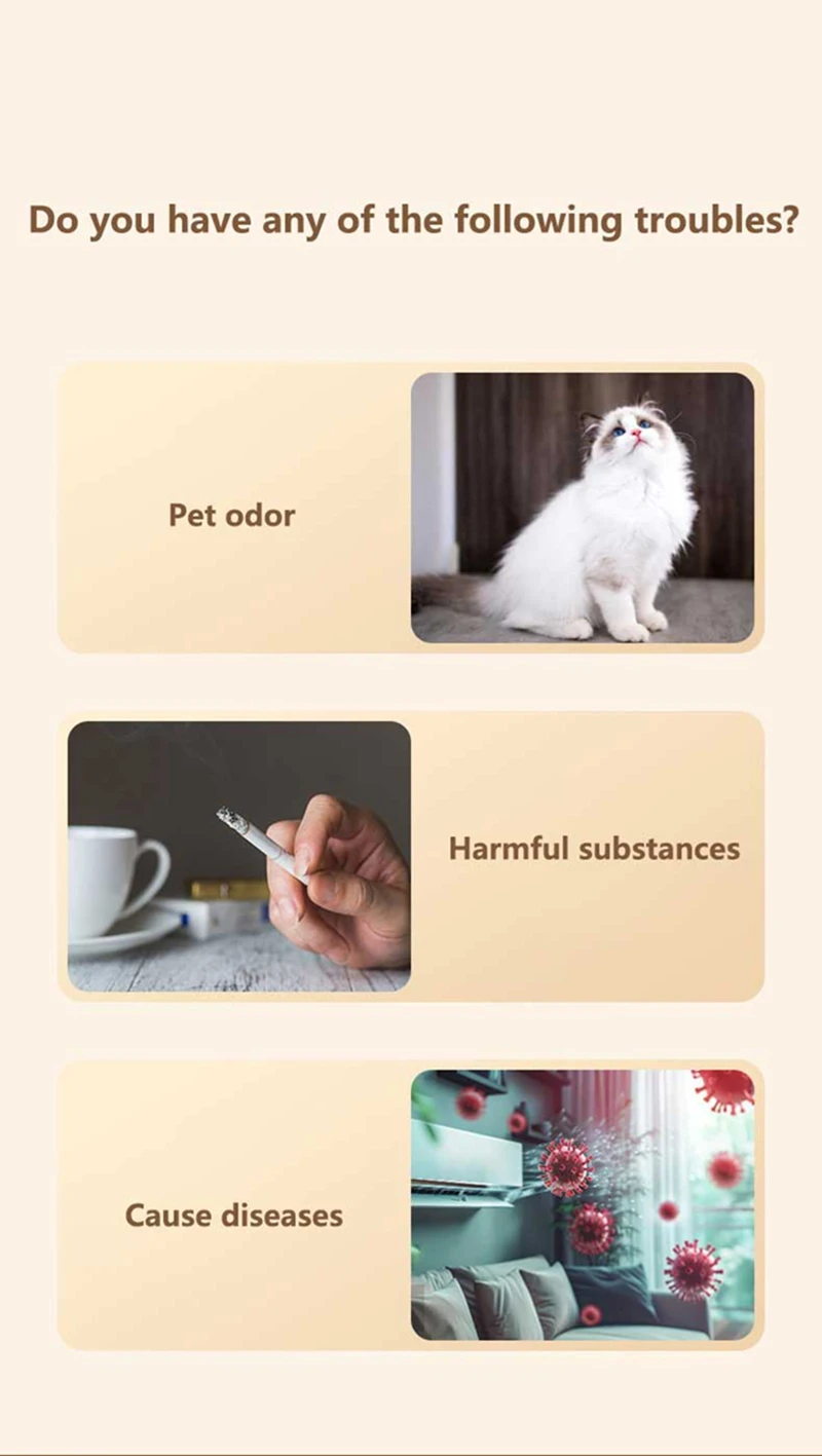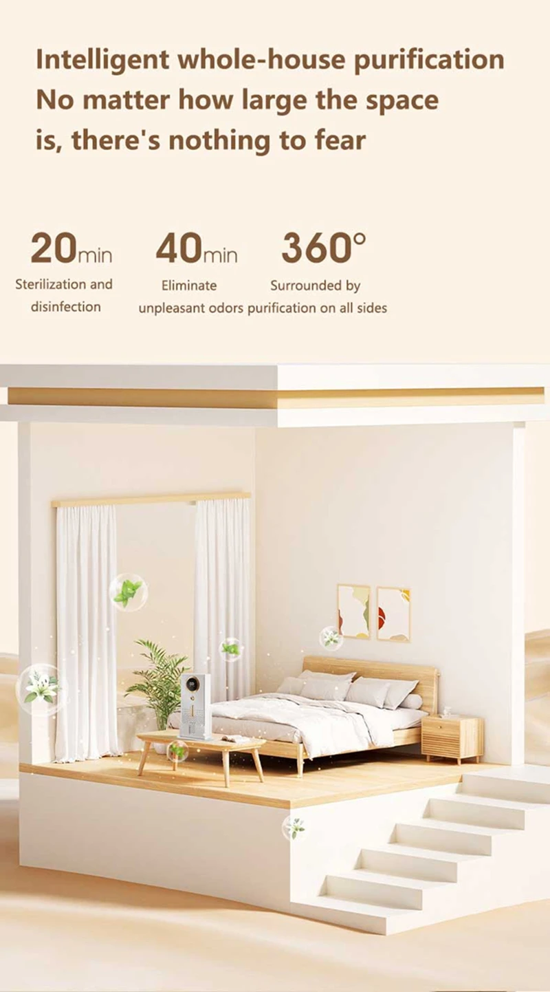Special ion generator breaks down stubborn smells from cooking, smoke, or pets at molecular level