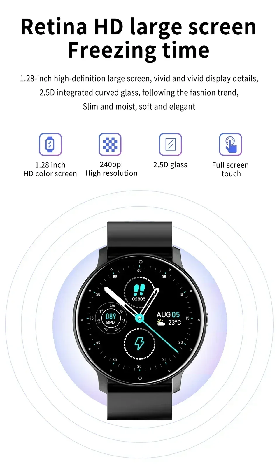 Screen: 1.28″ 240*240 full fit full touch screen