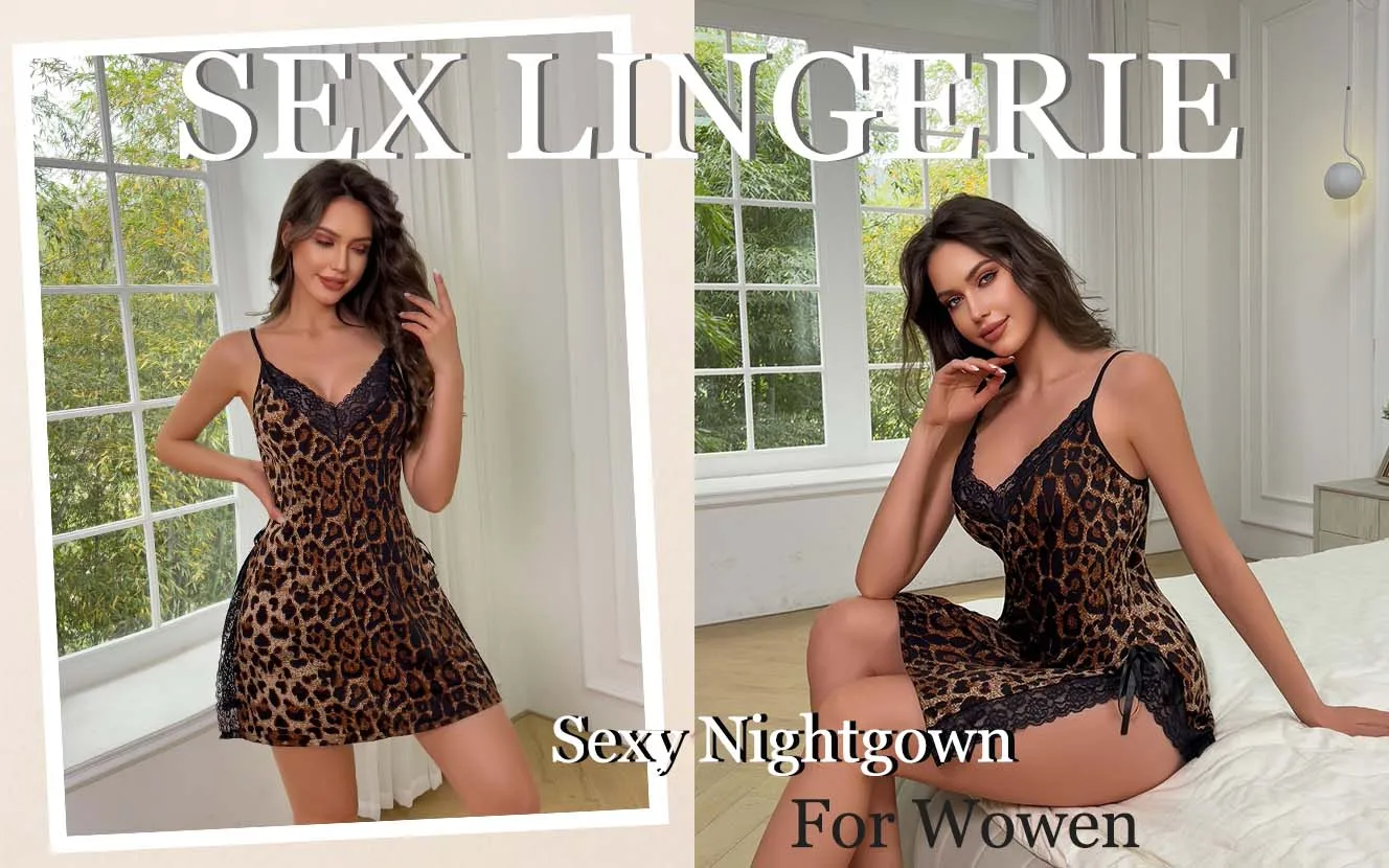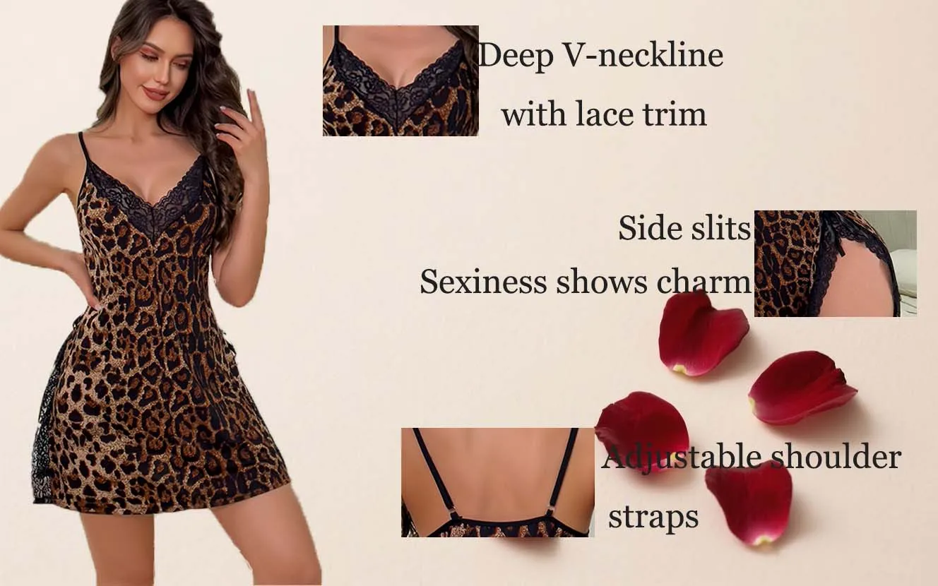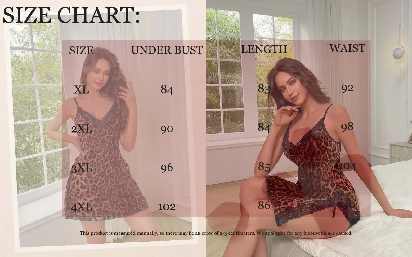 Price range: 23.82$ through 24.52$XL – 4XL plus – size women’s sexy nightgowns with thin shoulder straps, lace leopard