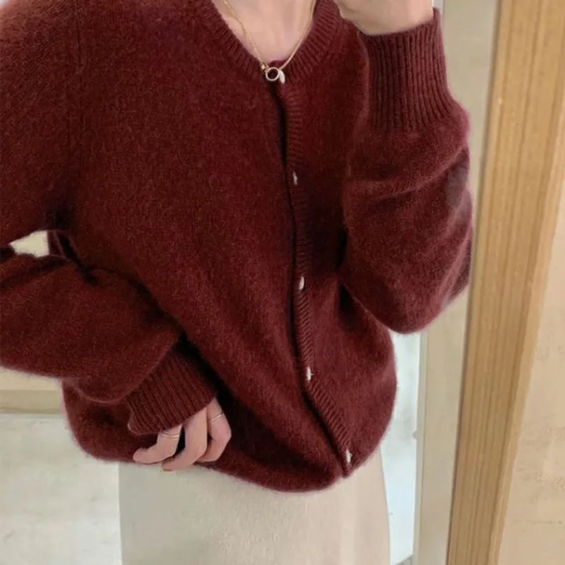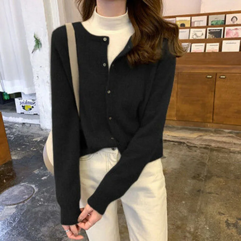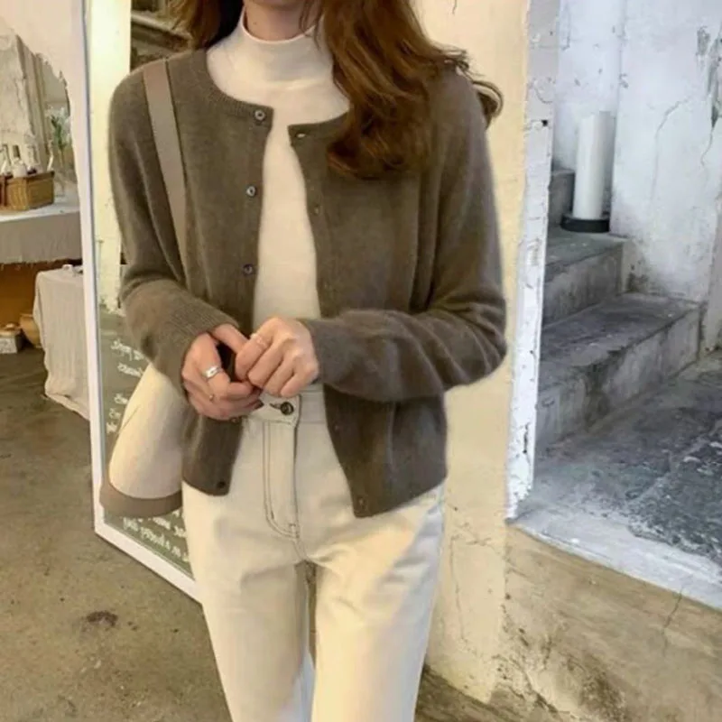 Winter Coats Woman Solid Color Simple And Fashionable Versatile Knitwear Cardigan Round Neck Casual Women's Outerwear