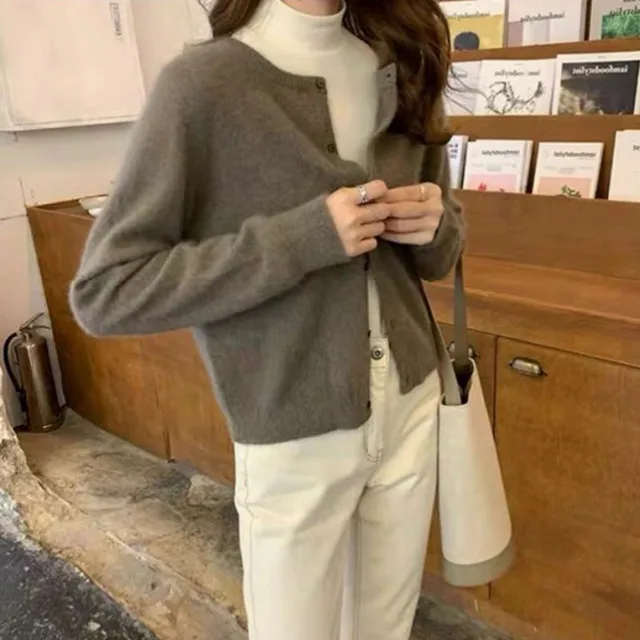 Women's Knitted Loose Top Round Neck Long Sleeve Button Autumn/Winter New Versatile Cardigan