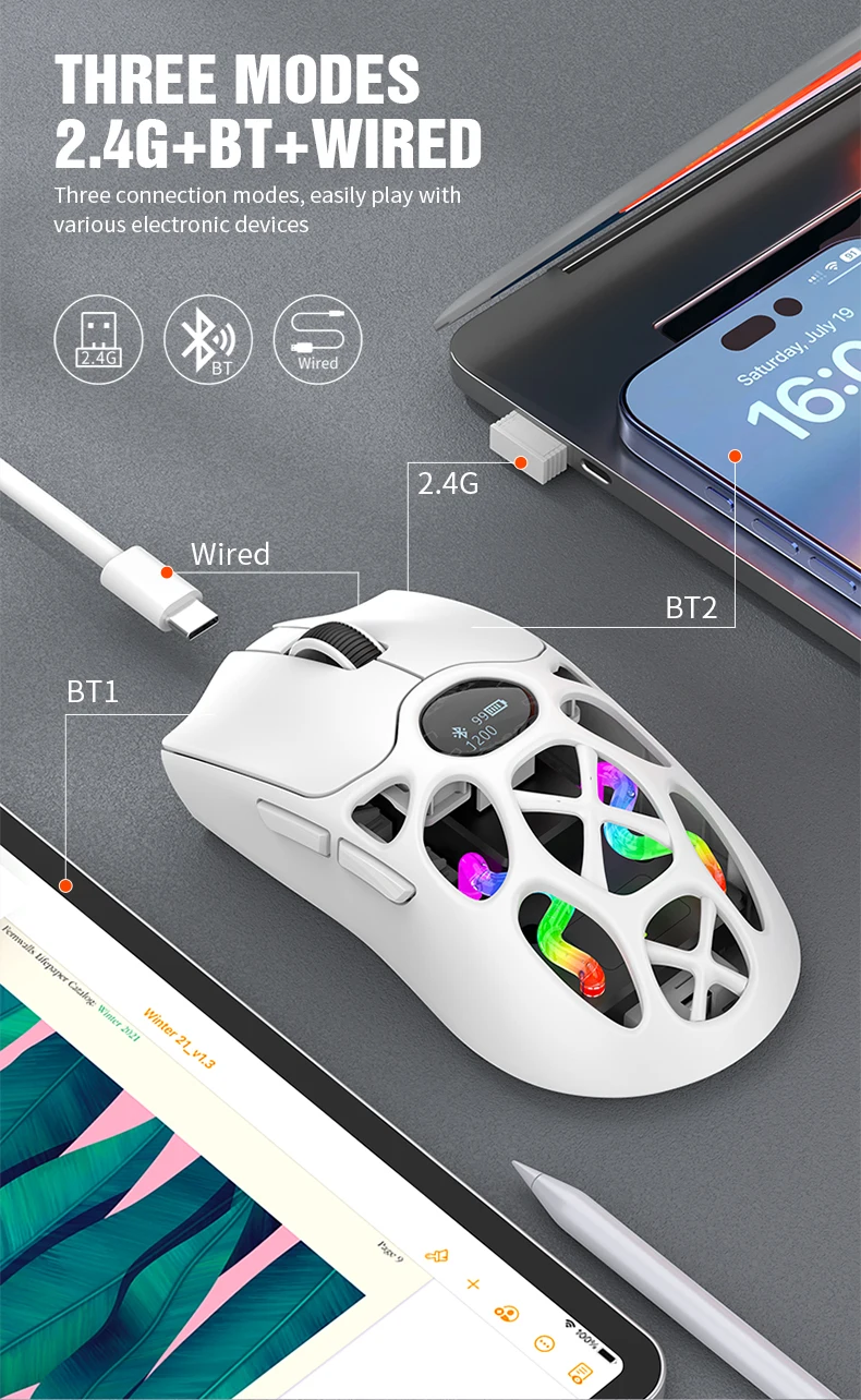 K-sanke X10 Bluetooth wireless three-mode mouse hollow lightweight gaming pen R laptop desktop gaming office 1000DPI