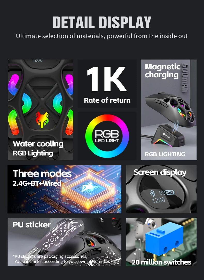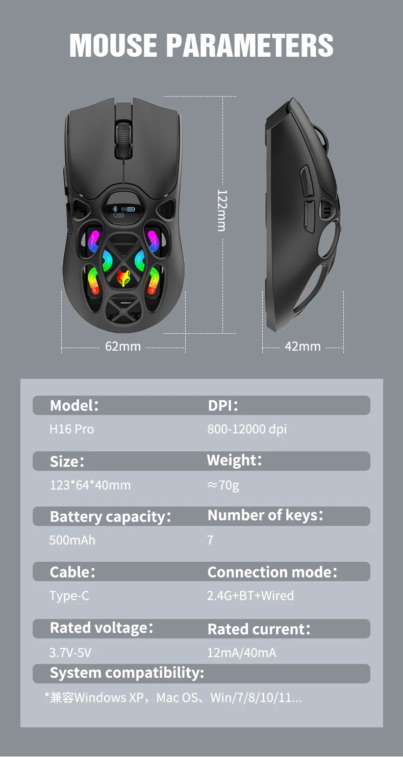 | Sensor model | Pixart 3311 (12000 DPI, 300 IPS, 35G) |