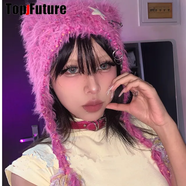 Price range: 17.34$ through 32.06$Y2K girl Harajuku Gothic Lolita cat Ear Hat Women Punk Designer Winter Beanie Hat Gothic lolita streetwear