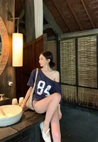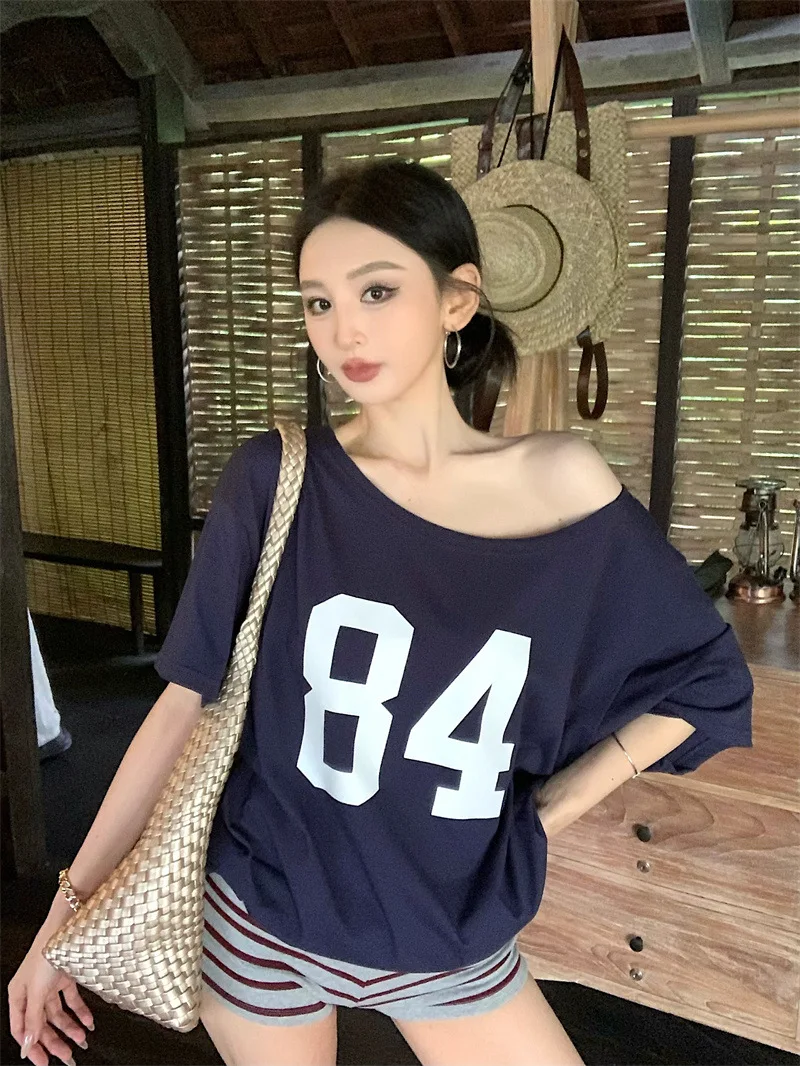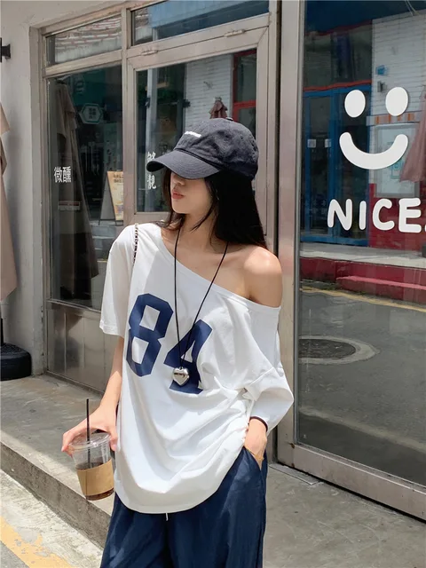 Y2K Goth Kwaii K-fashion Prints T-shirt T shirt Women Casual Loose Number Crop Top Off Shoulder Sexy