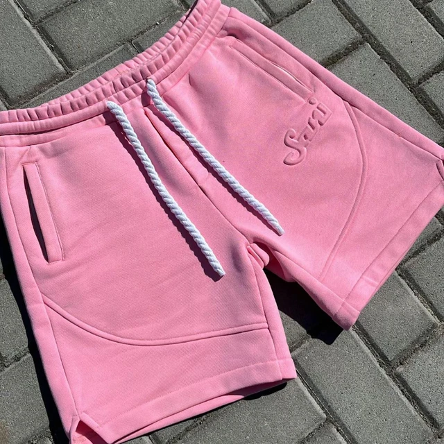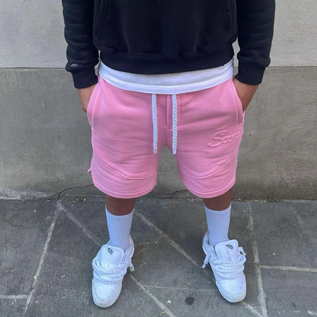 Y2K Harajuku Solid Shorts Man Letter Embossed Pink Sweatpants Hip Hop Retro Casual Stylish Comfortable Shorts Unisex Baggy Pants