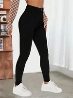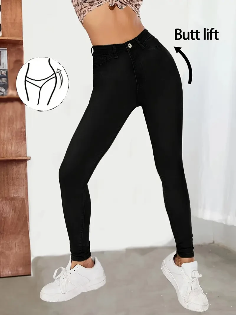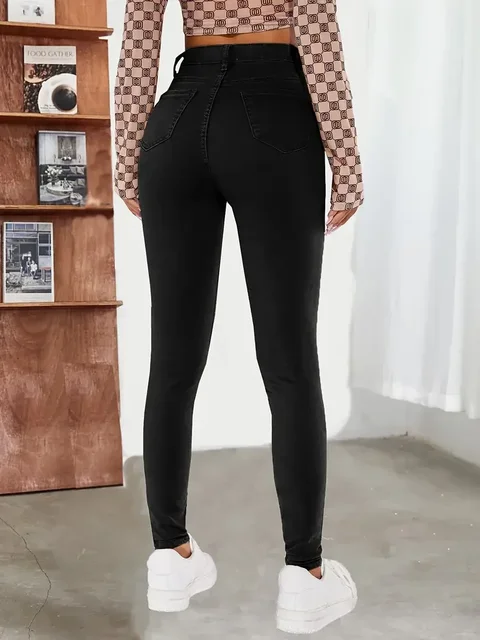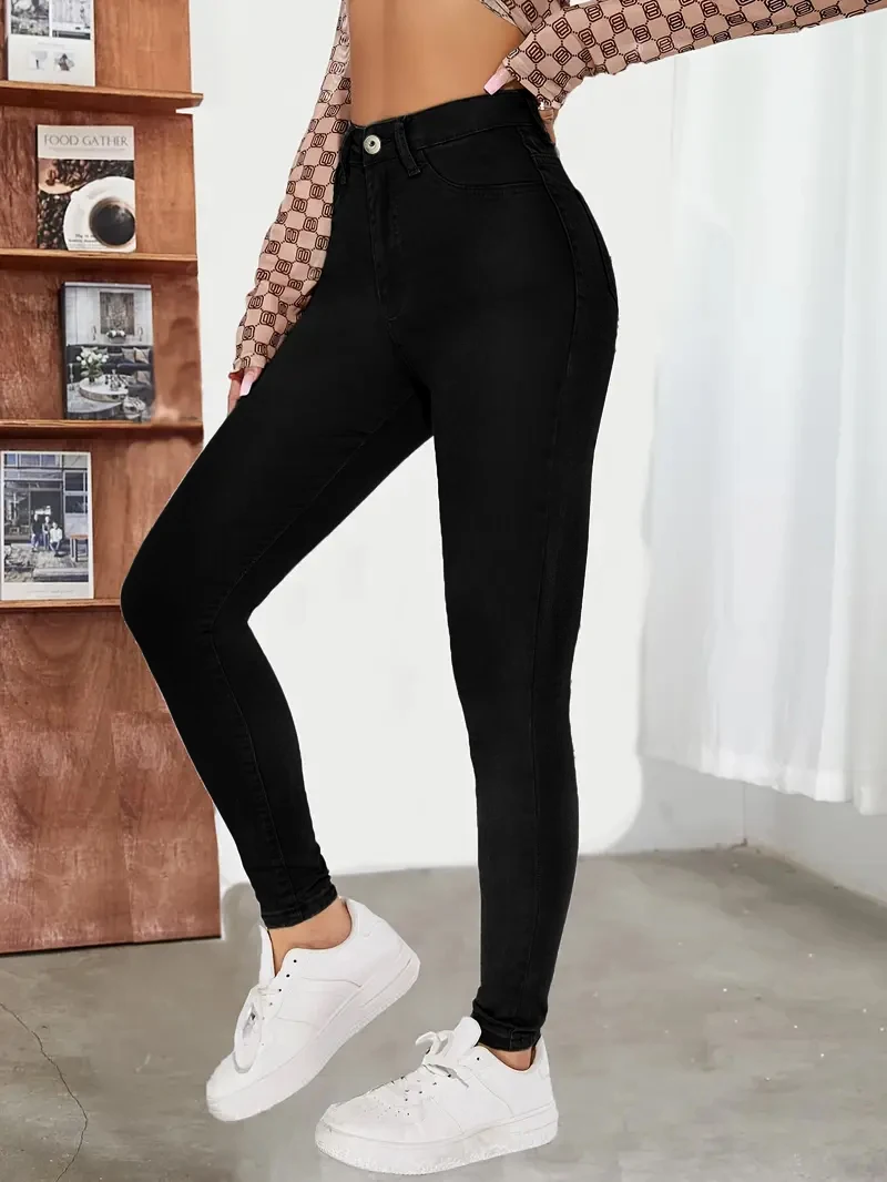 New Women's High Waist Stretch Jeans Blue Black Gray Fashionable and Versatile Multi-button Popular Slim Denim Long Pants Female