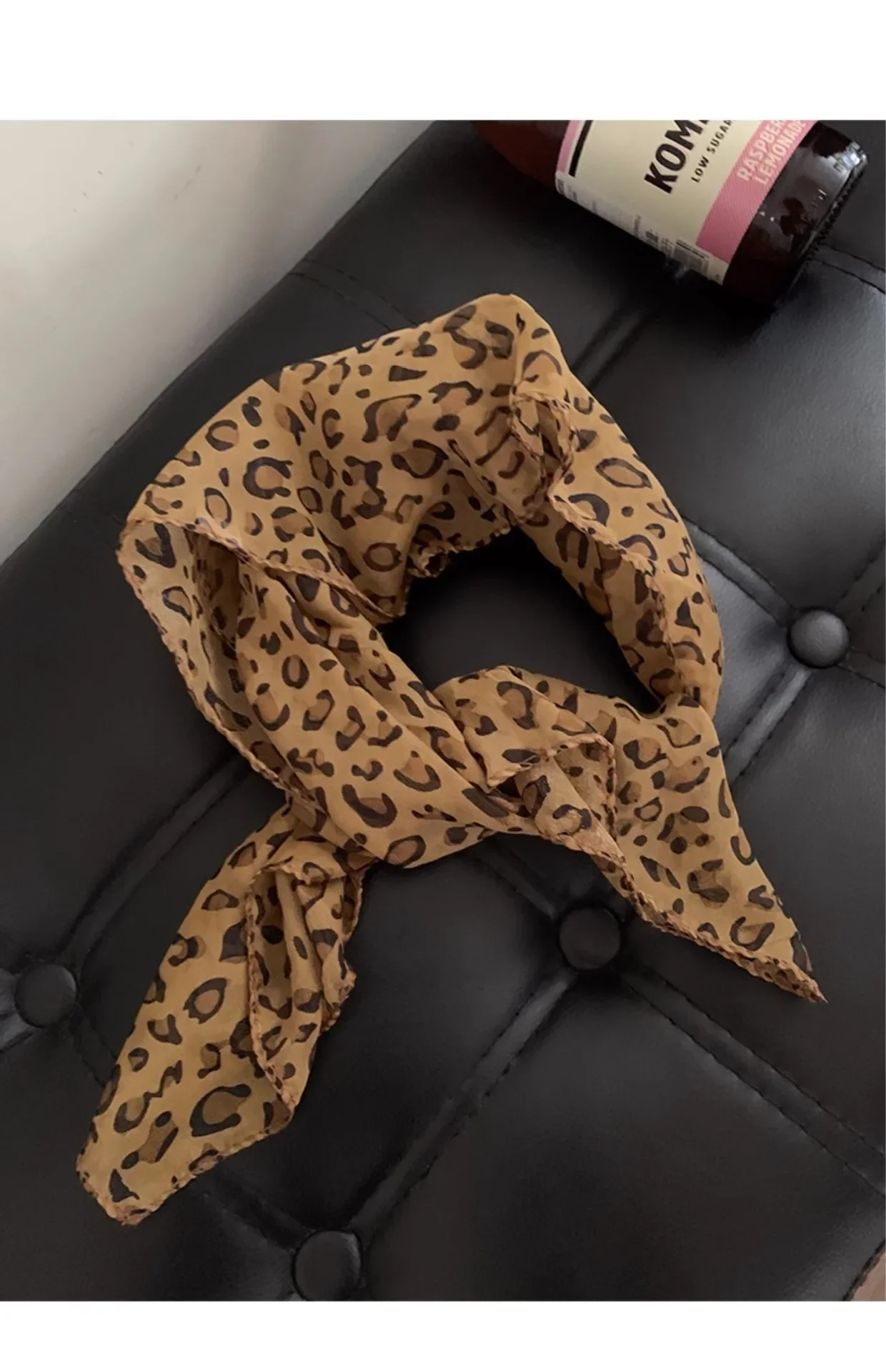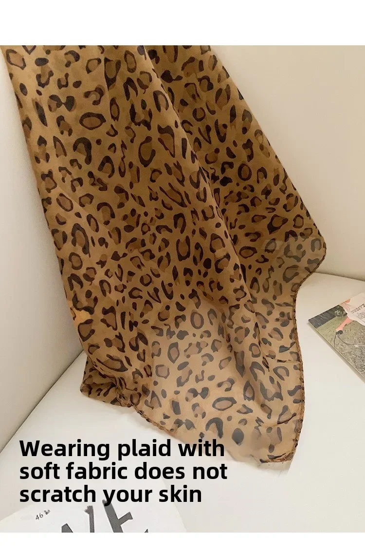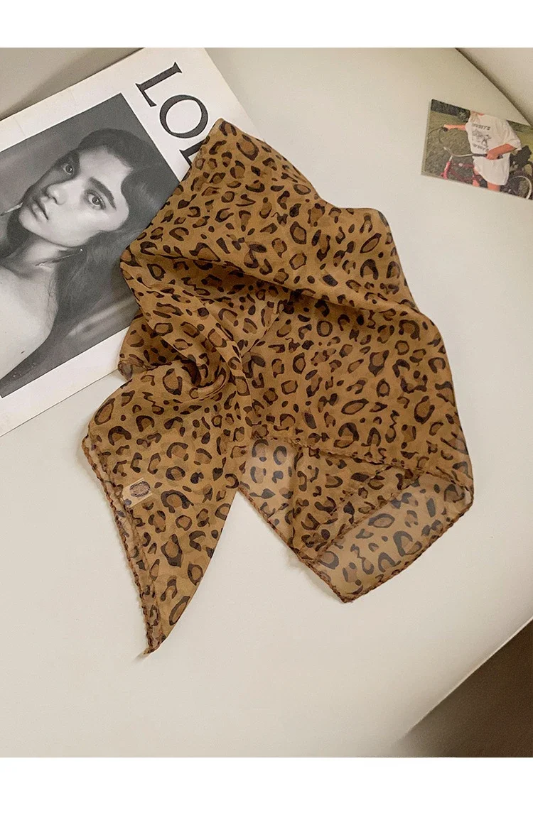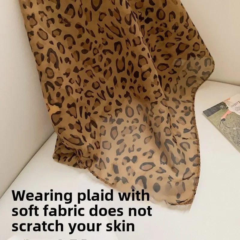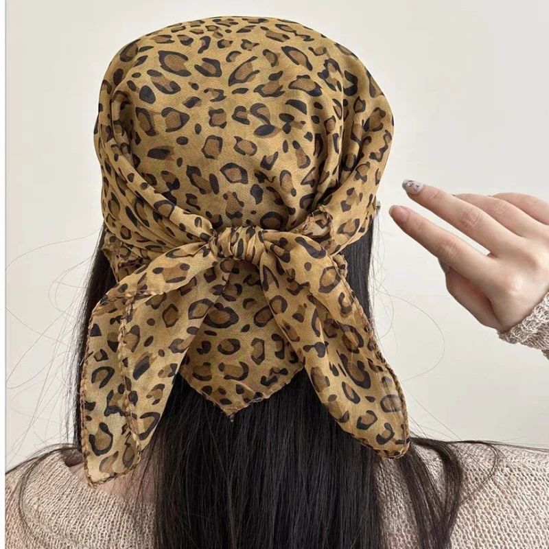 Retro Leopard Print Square Scarf for Women Satin Thin Edge Scarves Head Band Fashion Y2K Lady Hair Shawl Wrap Female Neckerchief