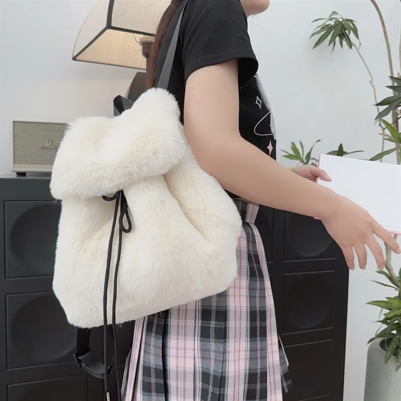 [-Plush-]This cute Backpack come with a lovely plush fabric, top hanging loop, matching black drawstring that’s designed for easy use. Lovely mini shape design with y2k flair.