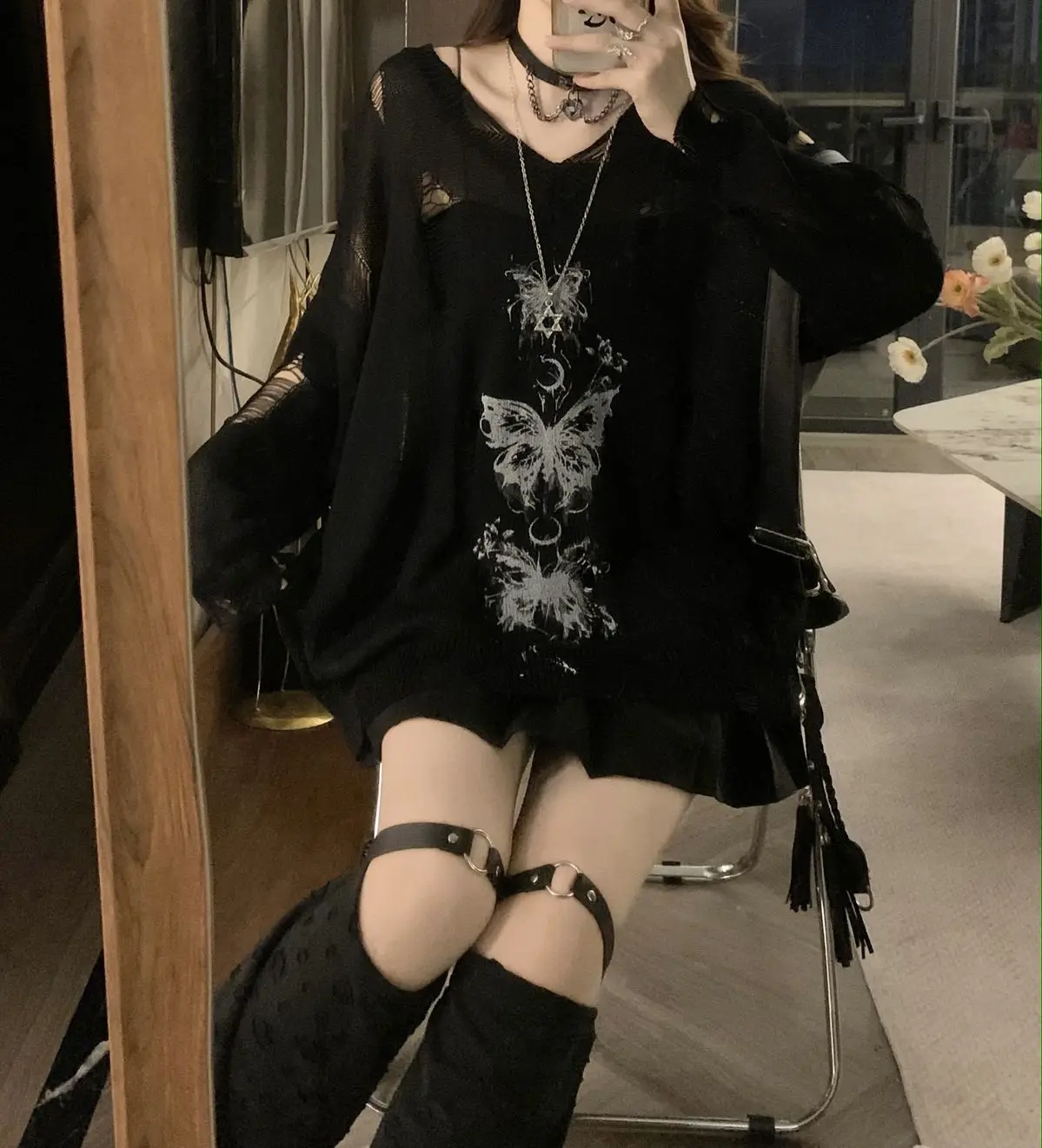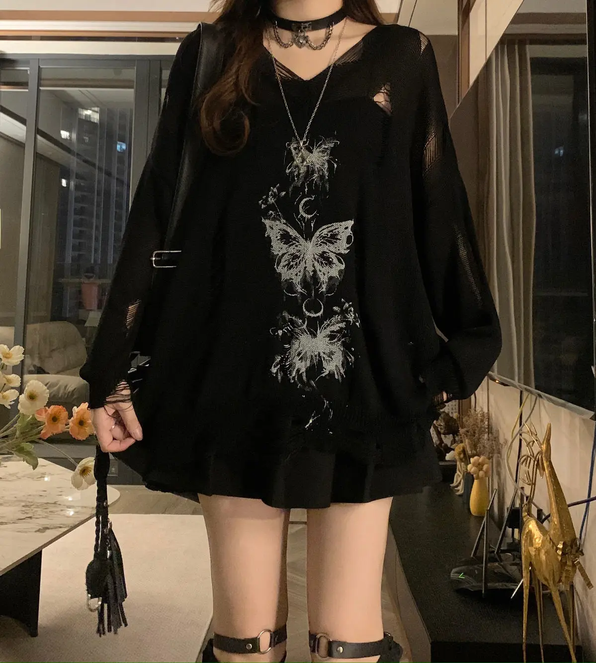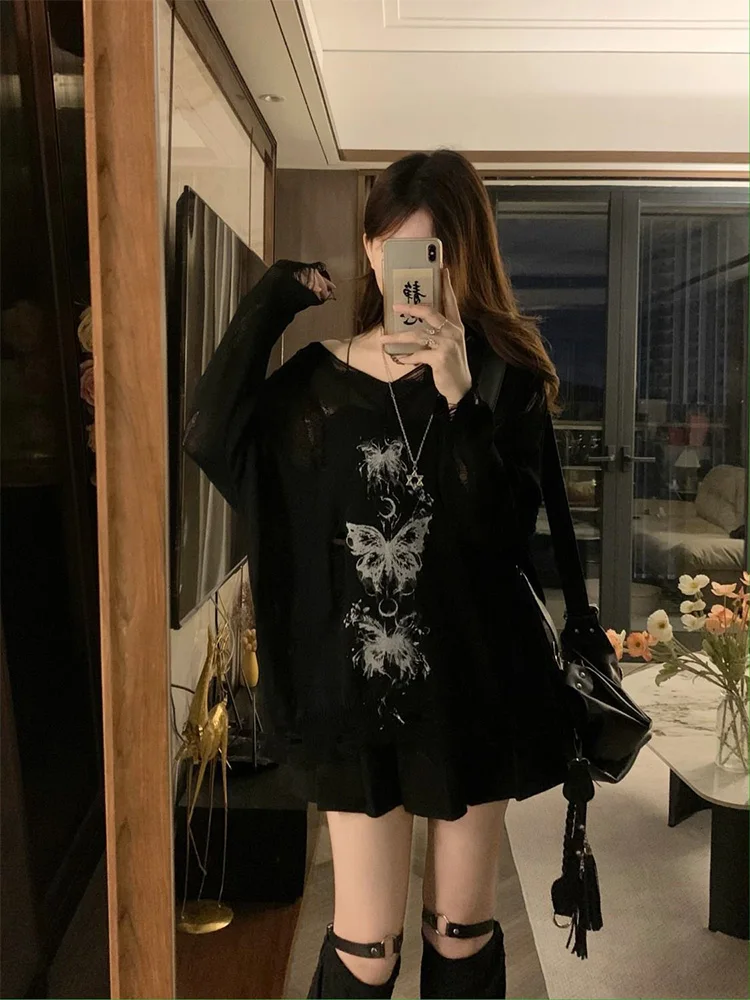 Embrace the retro Y2K trend with this chic butterfly print T-shirt, perfect for adding a vintage touch to your autumn wardrobe.
