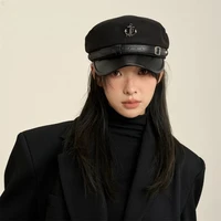 New Autumn Winter Women'S Warm Large Head Size Fisherman Hat Slouchy Beret Octagonal Cap Face Slimming