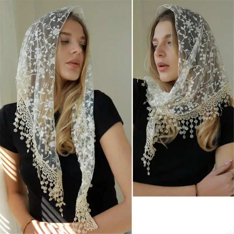 Y3NE Elegant Lace Head Wrap Sheer Flower Headscarf for Women Otudoor Sun Protections