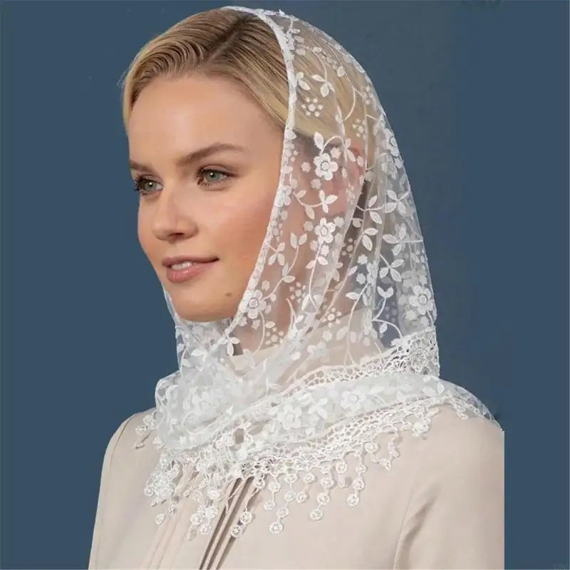 Y3NE Elegant Lace Head Wrap Sheer Flower Headscarf for Women Otudoor Sun Protections