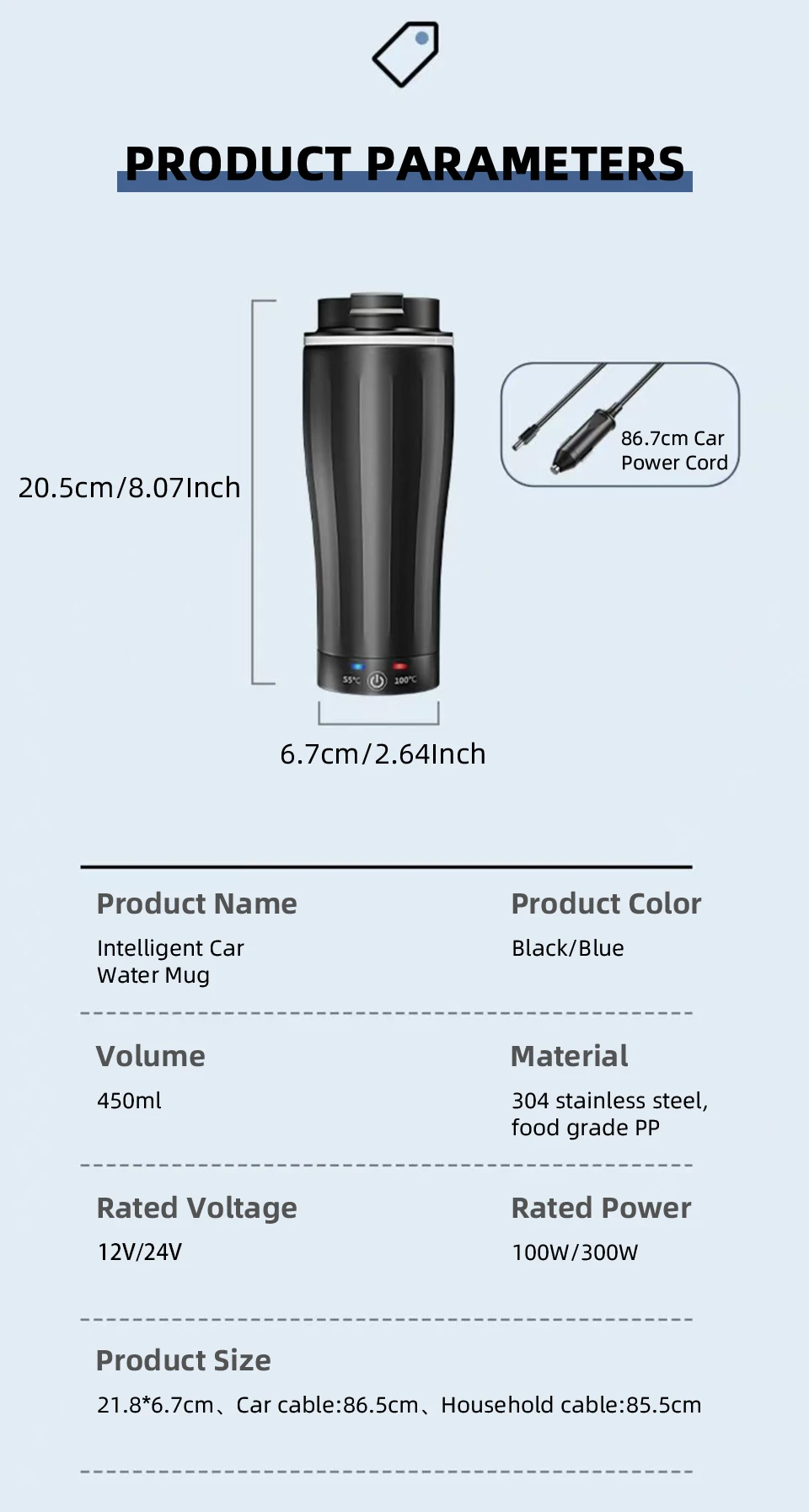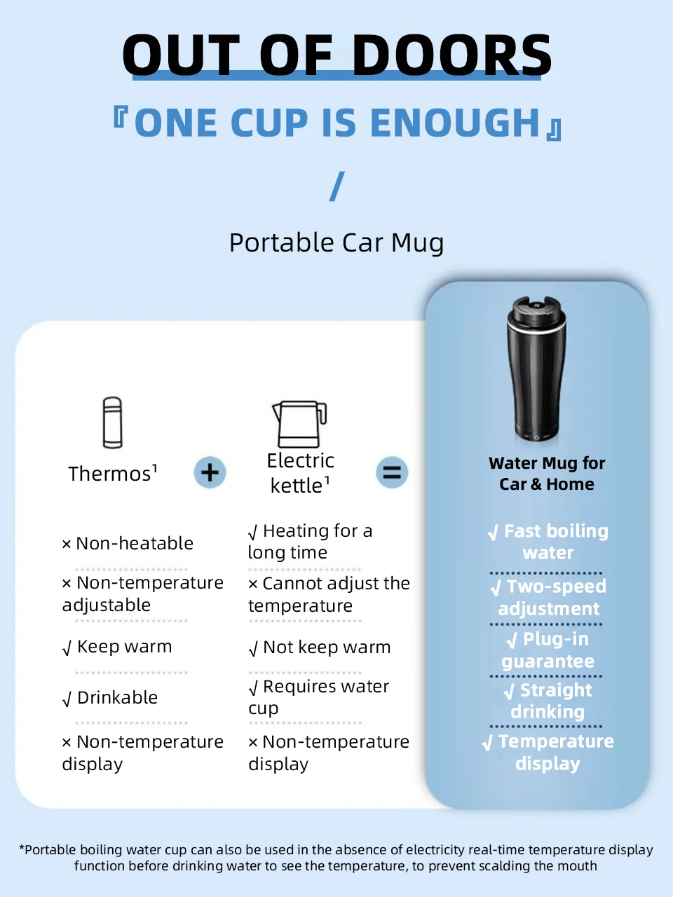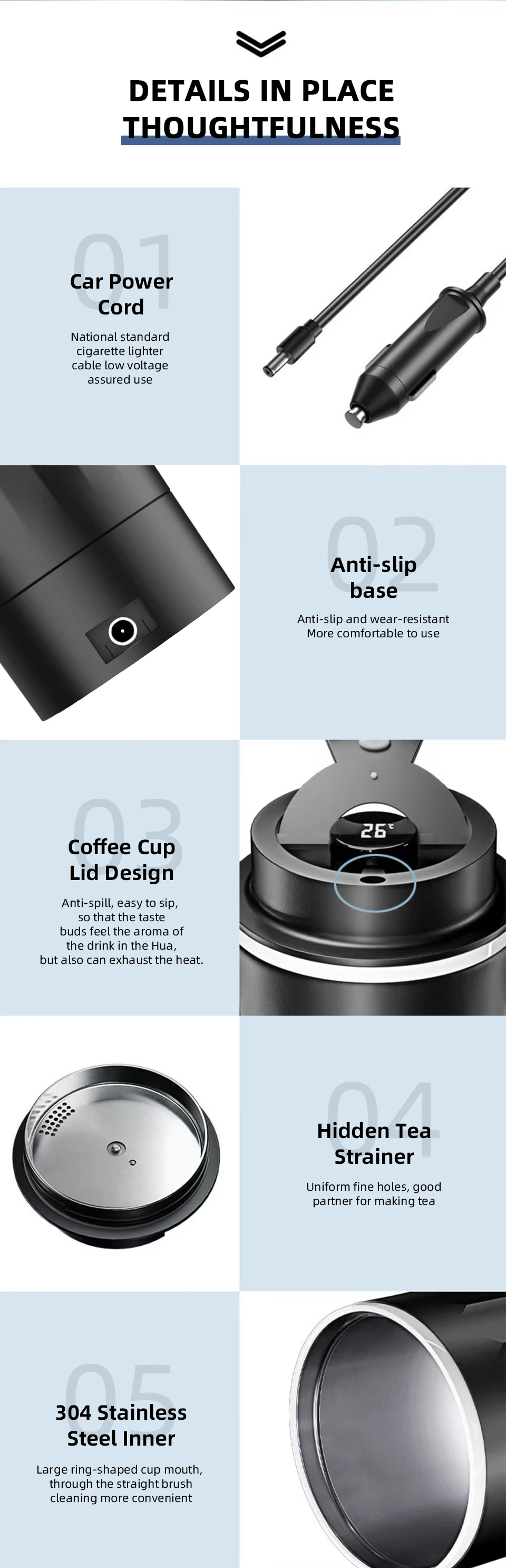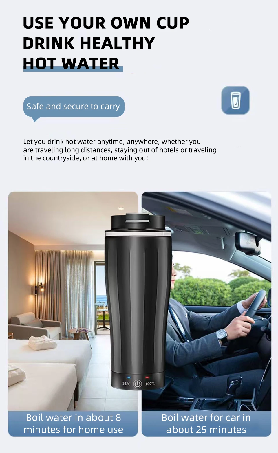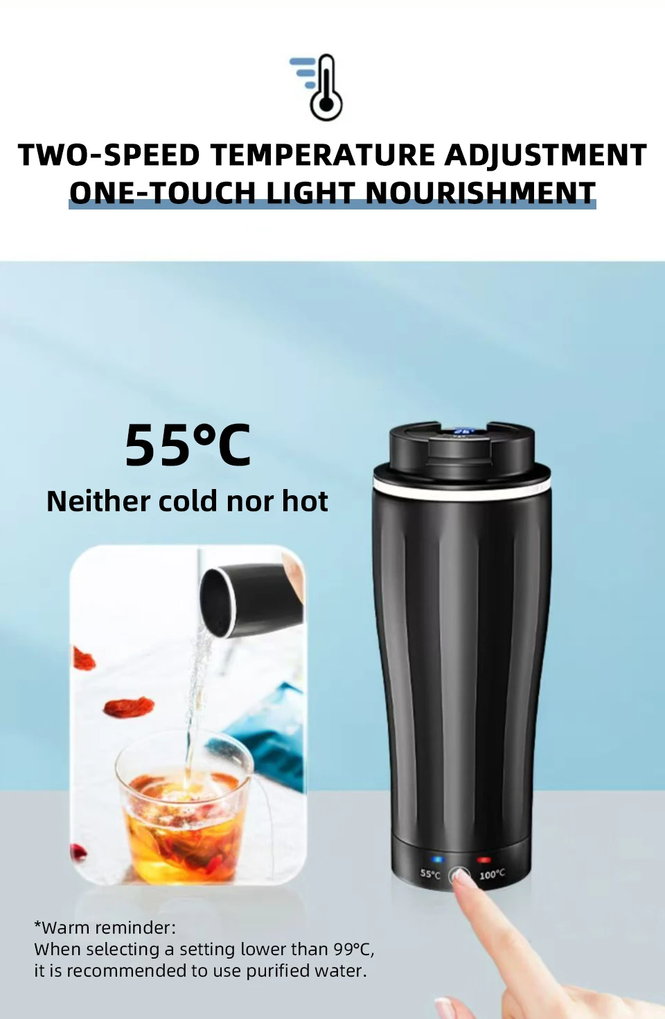 Warm Tip: When heating the cup, the water will boil in the heating cup, and then keep the temperature to the original set temperature, please open the cup mouth when heating.