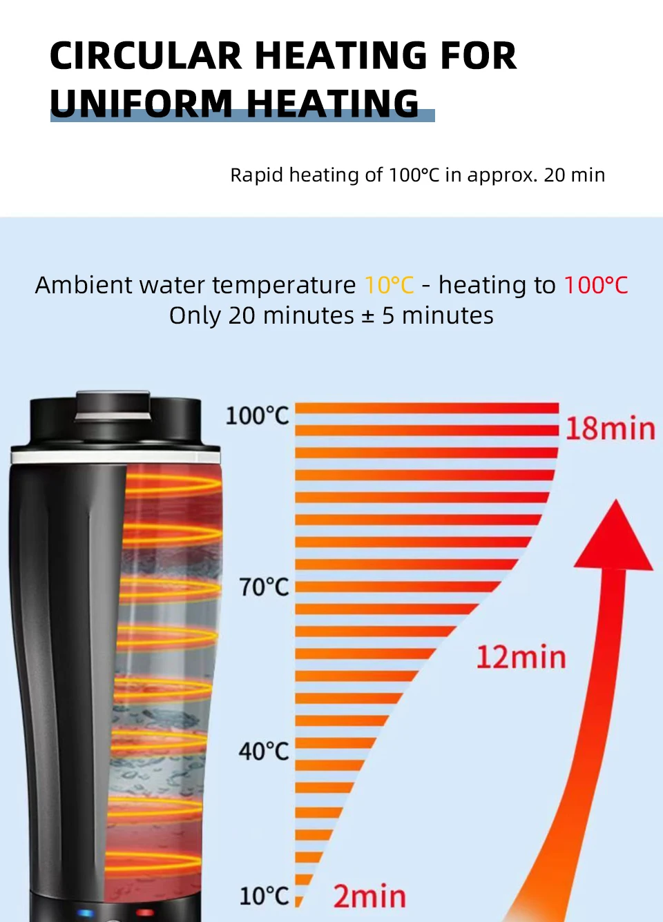 ▶ Quick heating. It only takes 20-25 minutes to heat a glass of water to 90 Celsius at room temperature