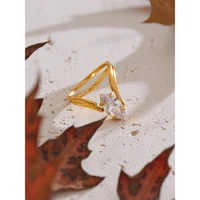 Yhpup 2025 Arrivals Stainless Steel Zirconia Delicate Ring 18K Golden Plated Hypoallergenic Exquisite