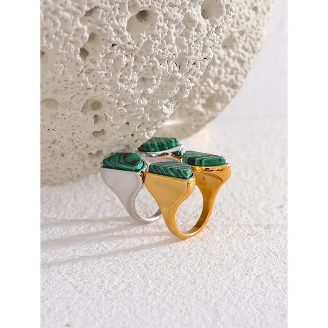 Be the first to review “Yhpup Green Natural Malachite Stone Stainless Steel Fashion Wide Ring Gold Silver Color Charm Waterproof”