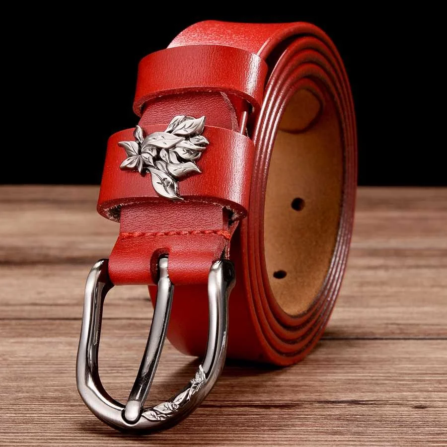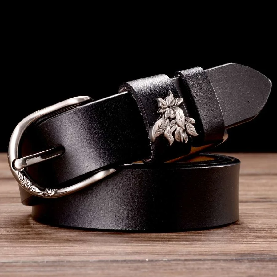 YKLYMYXJUNIA Women Leather Belt NEW Female Waistband Cowhide With Alloy Buckle Width:2.8cm 95-110cm