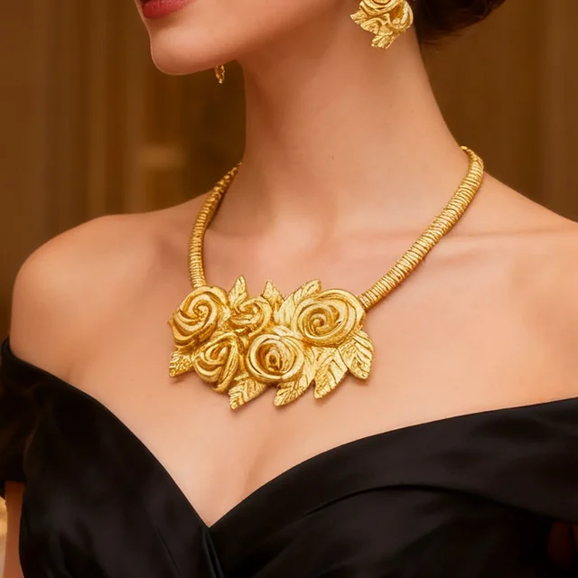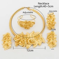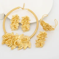 YM 18K Gold Plated wedding jewelry for woman Luxury Exquisite Flower Necklace earrings Bracelet Ring set bridal accessories Gifts