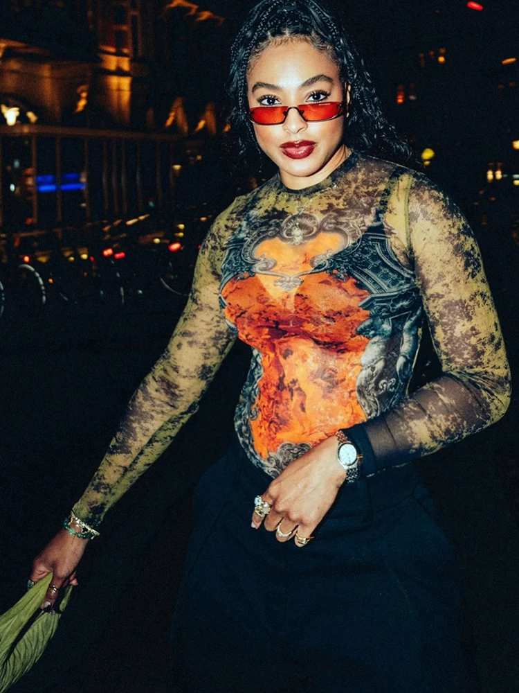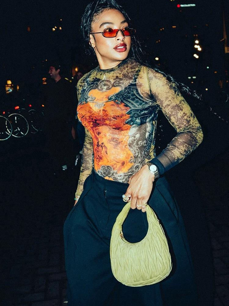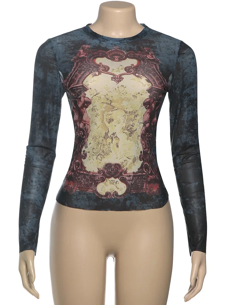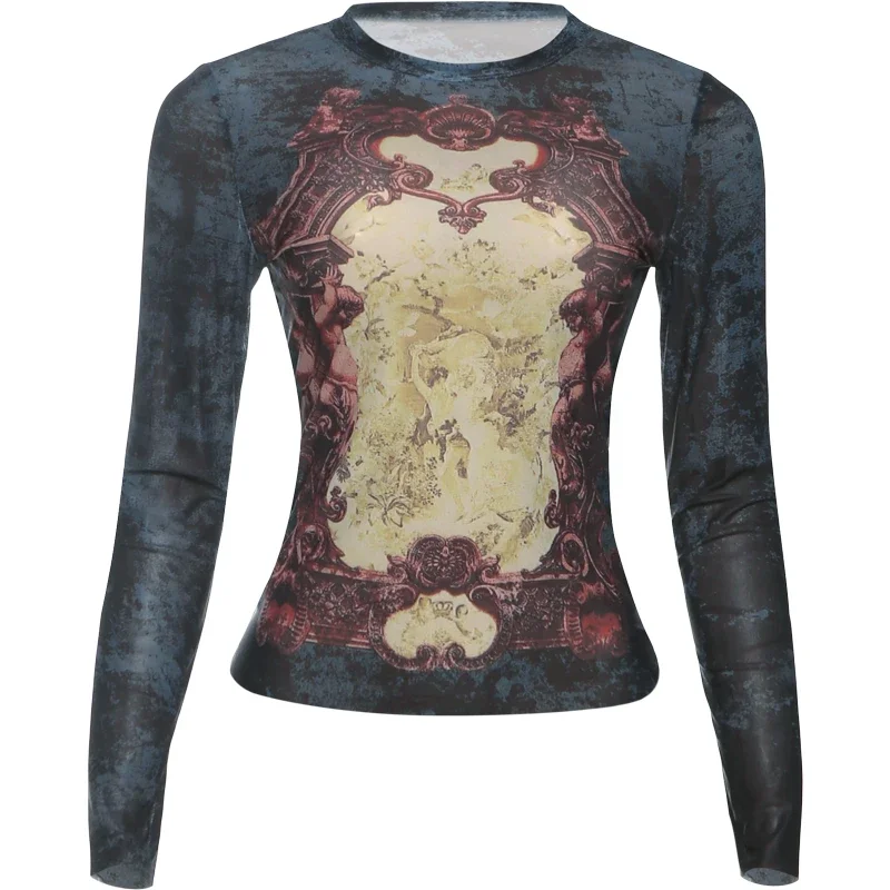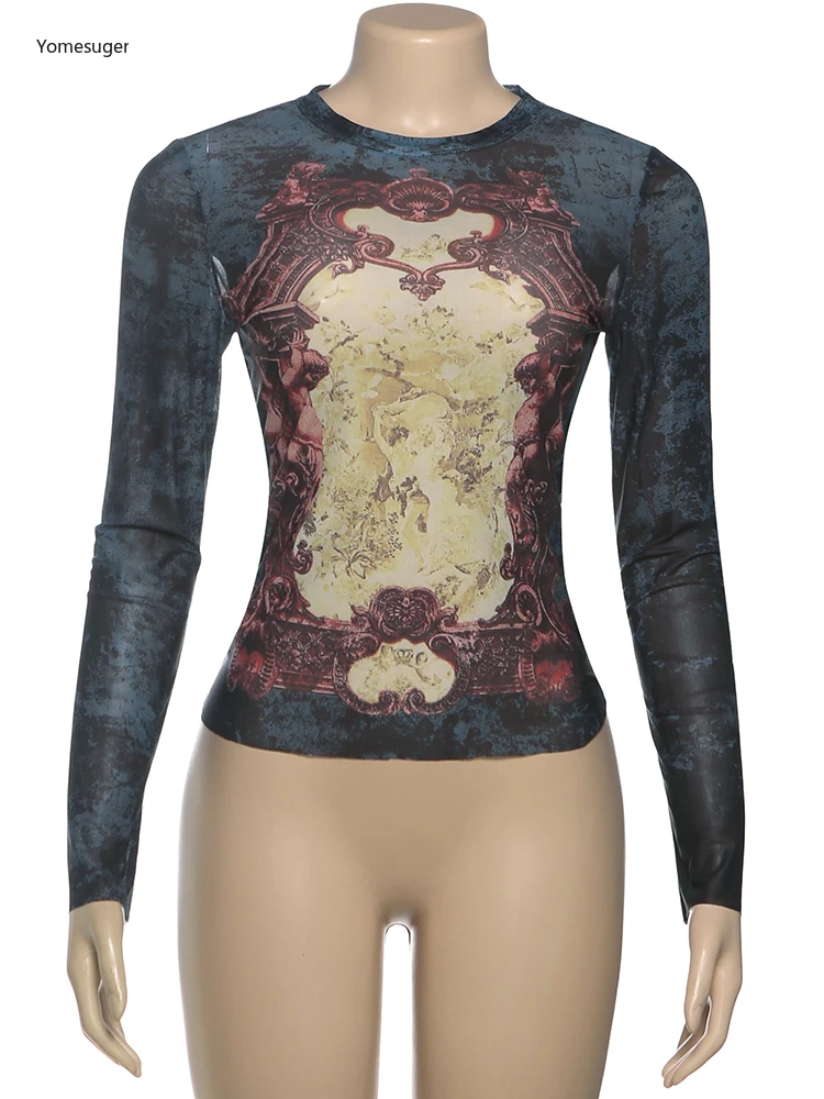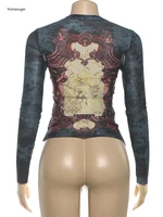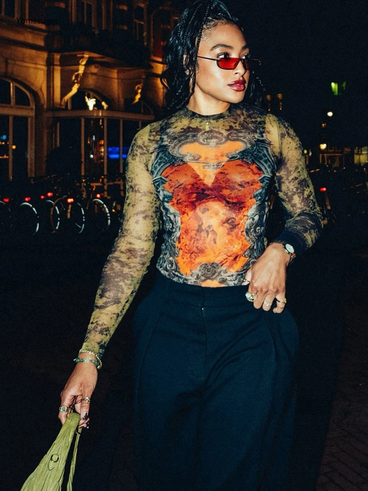 Autumn Color Blocked Printed Women's Long Sleeved T-shirts Geometry Zipper V-neck High Street Woman Tops Loose Casual Clothes