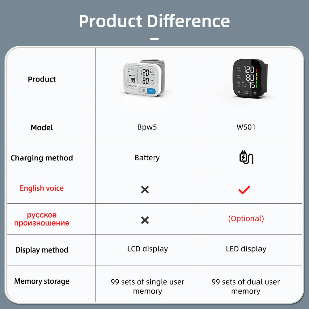 Since blood pressure varies throughout the body, readings will most likely vary from your upper arm to your wrist. All Yongrow blood pressure monitors, whether upper arm or wrist, are certified to international standards and are validated in the same way and have the same accuracy specifications.