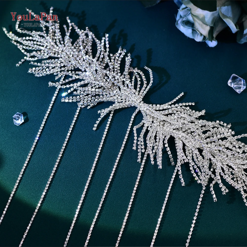 YouLaPan 100% Handmade Tassels Drill Chain Wedding Headband Bridal Headdress Wedding Bridal Hair Accessories Bridal Headband Rhinestone Headpieces