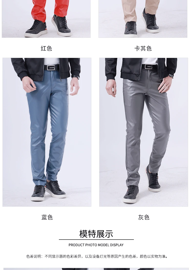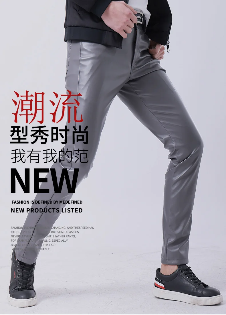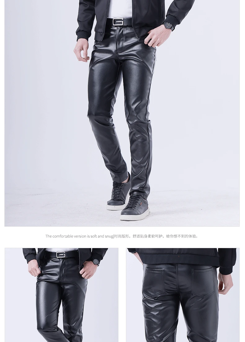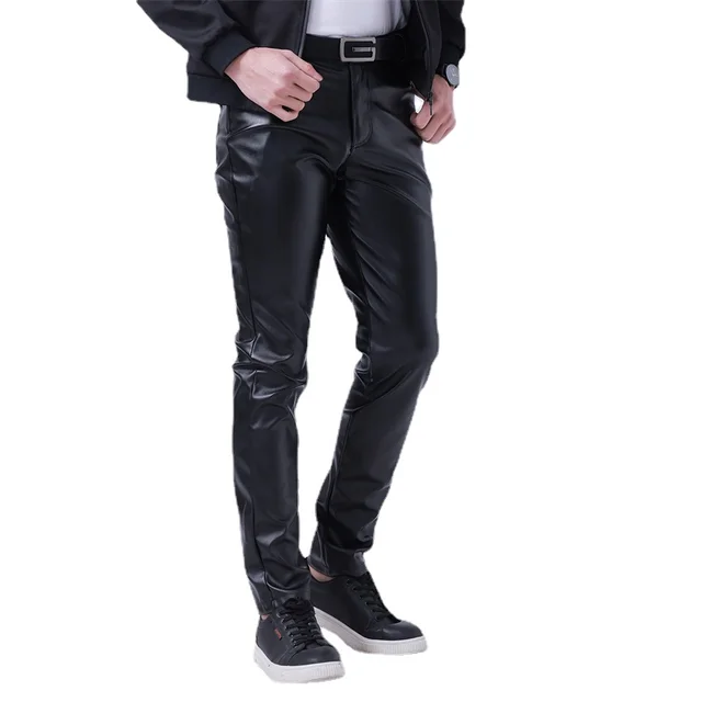 2025 New Arrived Skinny Biker Leather Pants Mens New Faux Leather Biker Trousers for Male Trouser Stage Club Wear