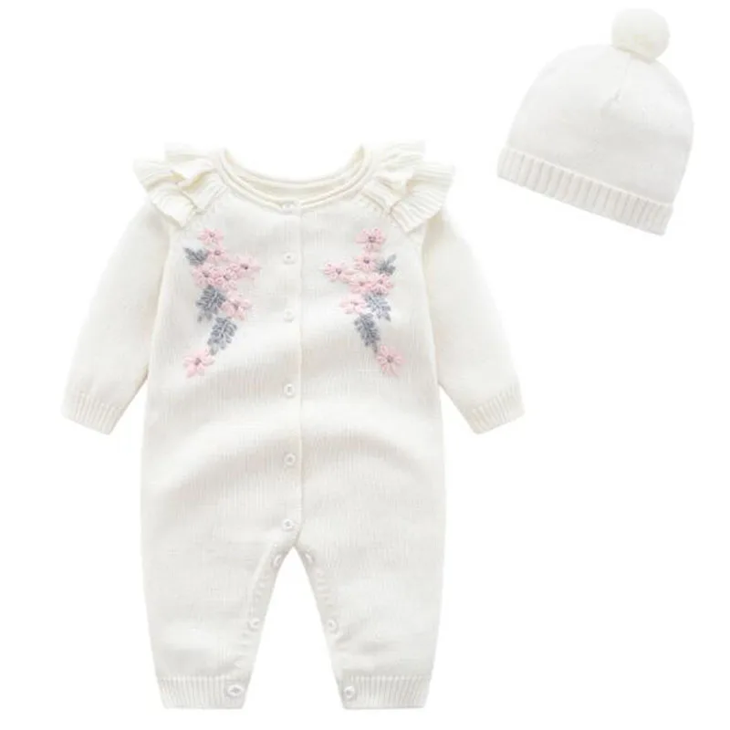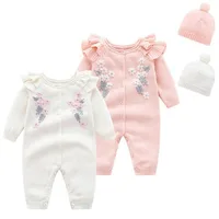 Kids New 2022 Spring Autumn Girl Embroidery Rompers + Hat Baby Girl Newborn Rompers Clothes Baby Girl Rompers