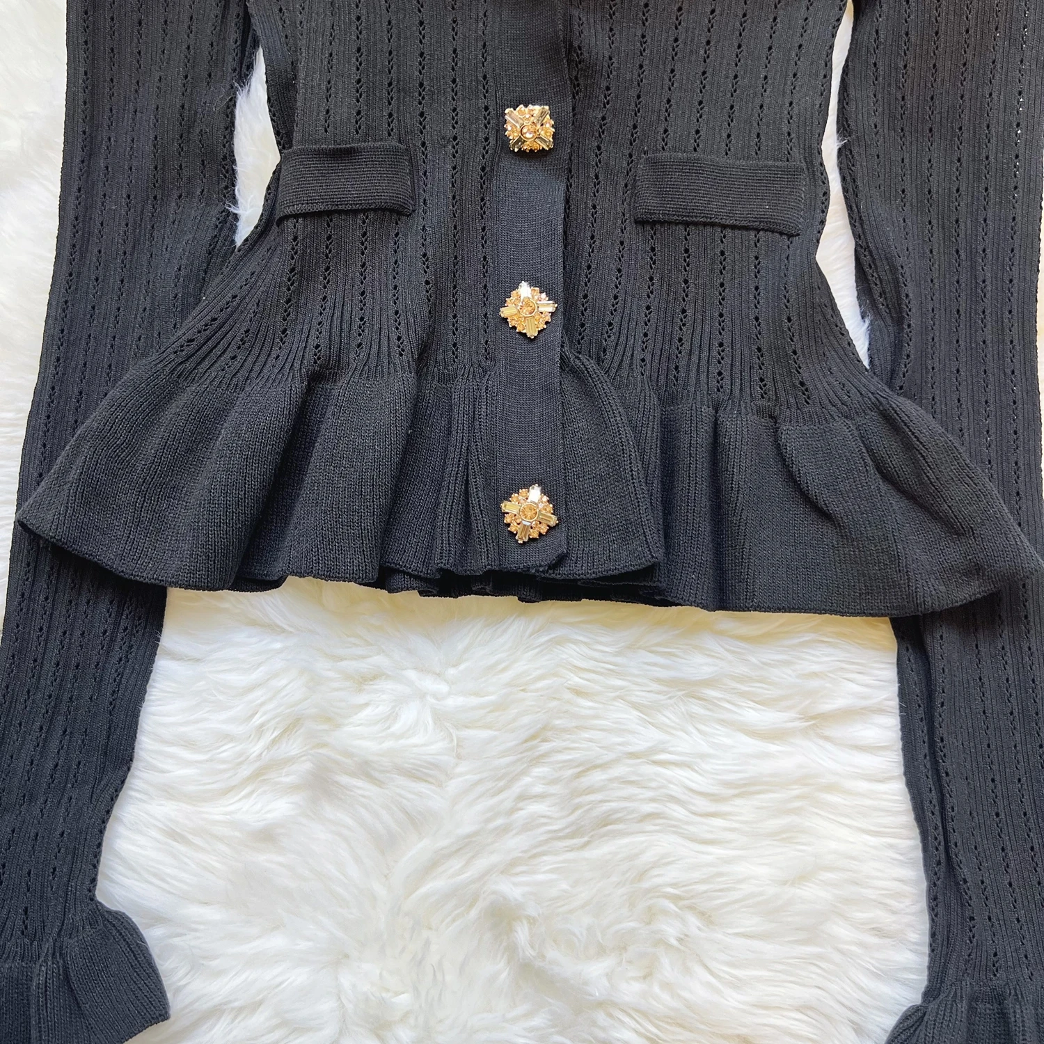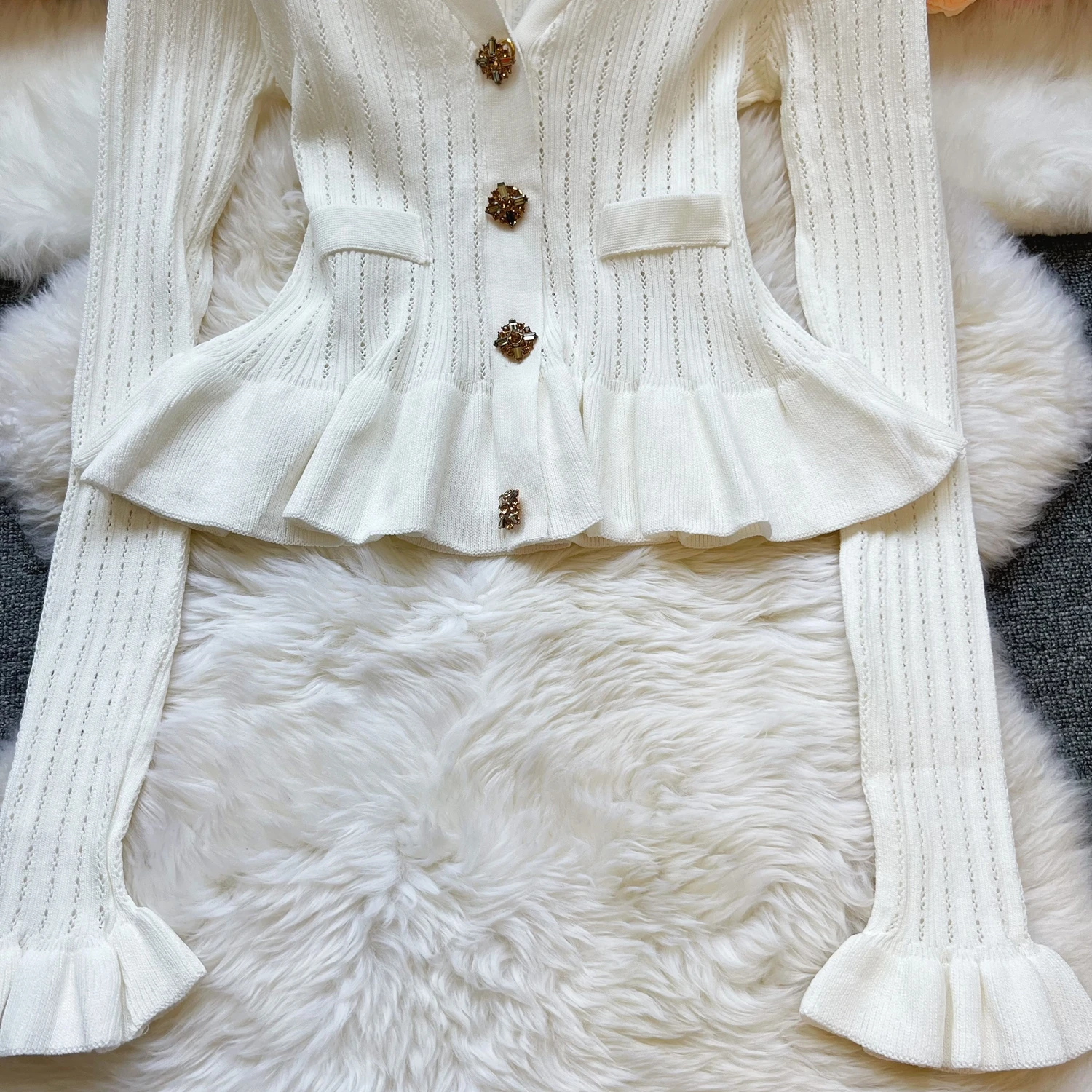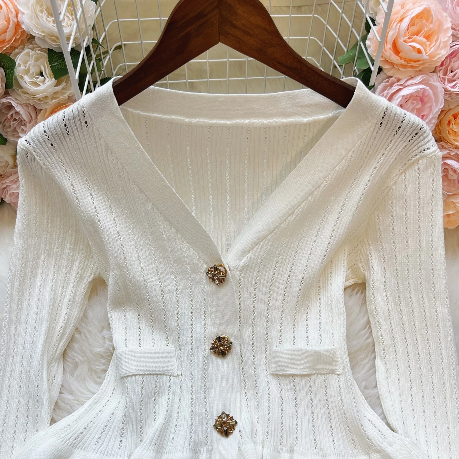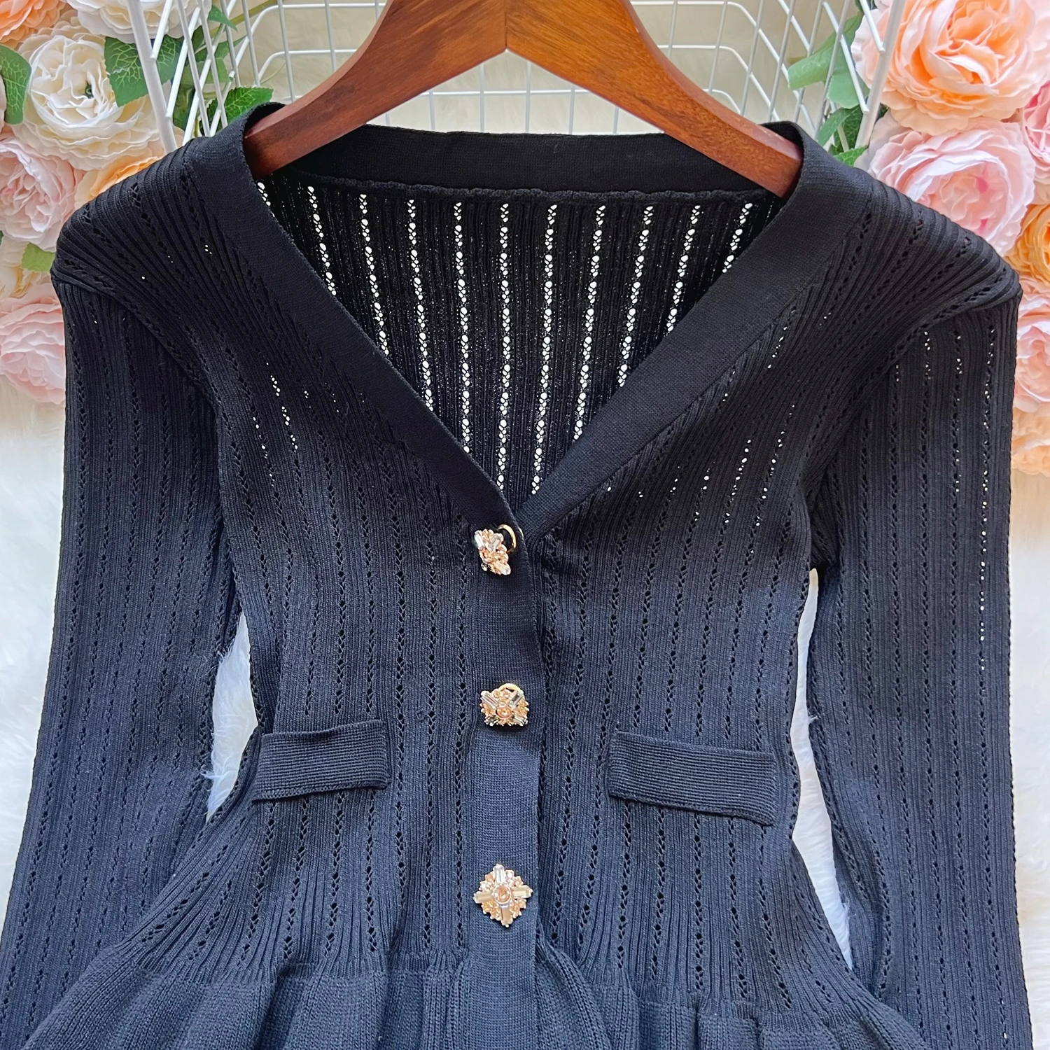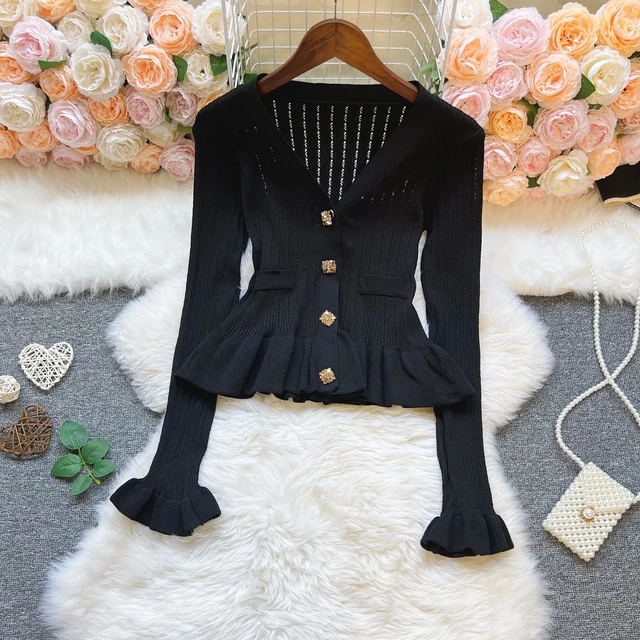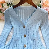 New Fashion Women's Knitted Solid Color Sweater Jacket with Pocket Lapel Cardigan Long Sleeve Casual Top