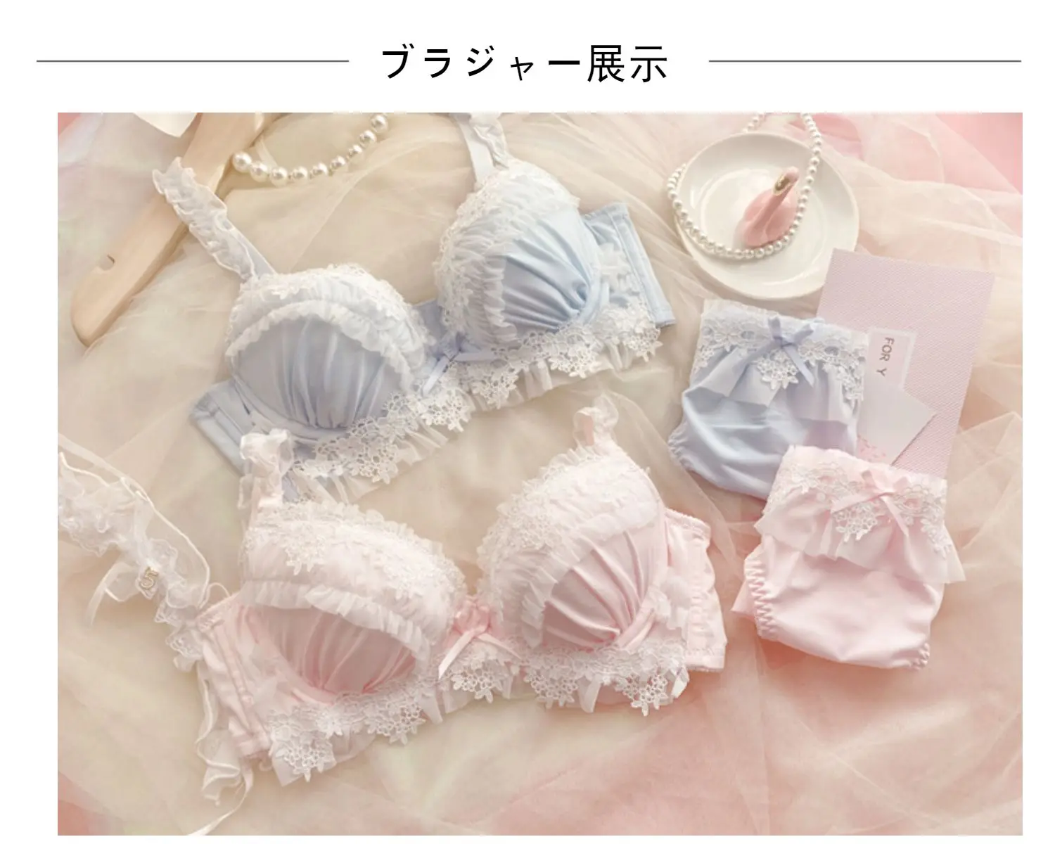 YUQI Japanese Style Kawaii Sexy Underwire Bra & Panty Set G Cup Large Cup Sheer Lace Demi Bra Pure