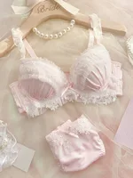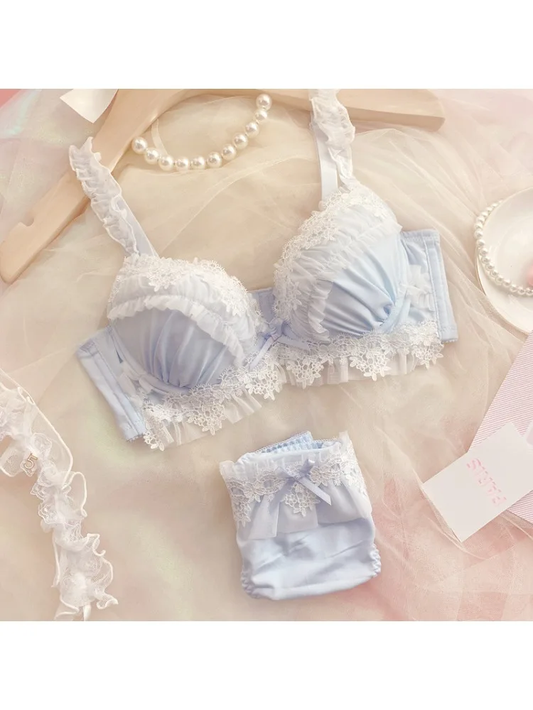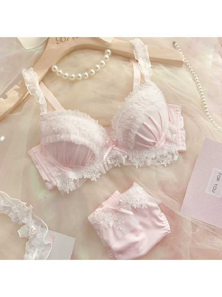 YUQI Japanese Style Kawaii Sexy Underwire Bra & Panty Set G Cup Large Cup Sheer Lace Demi Bra Pure