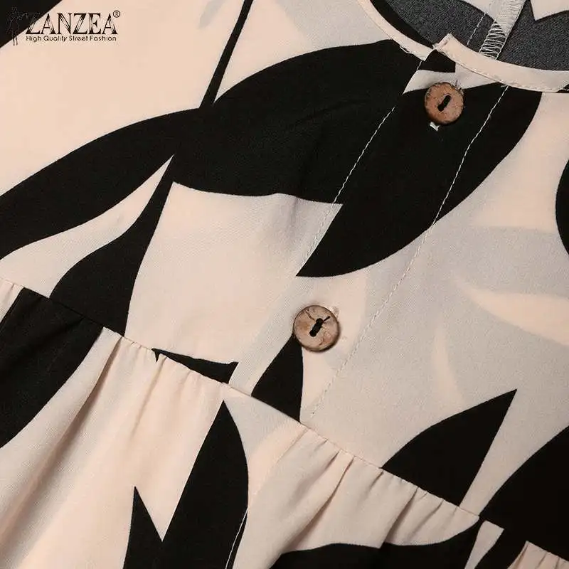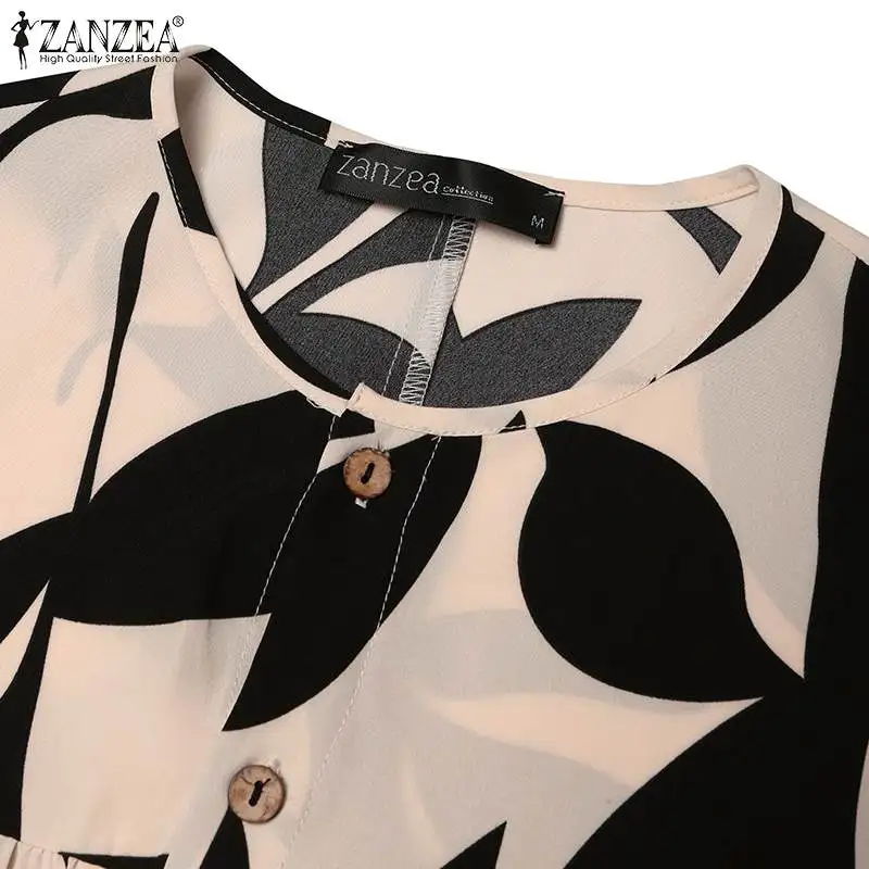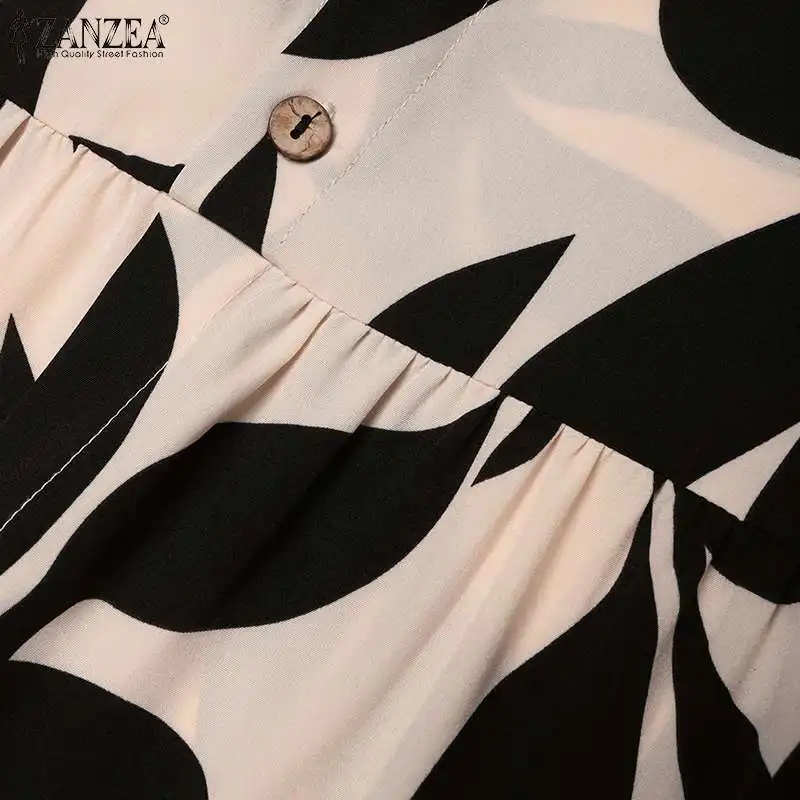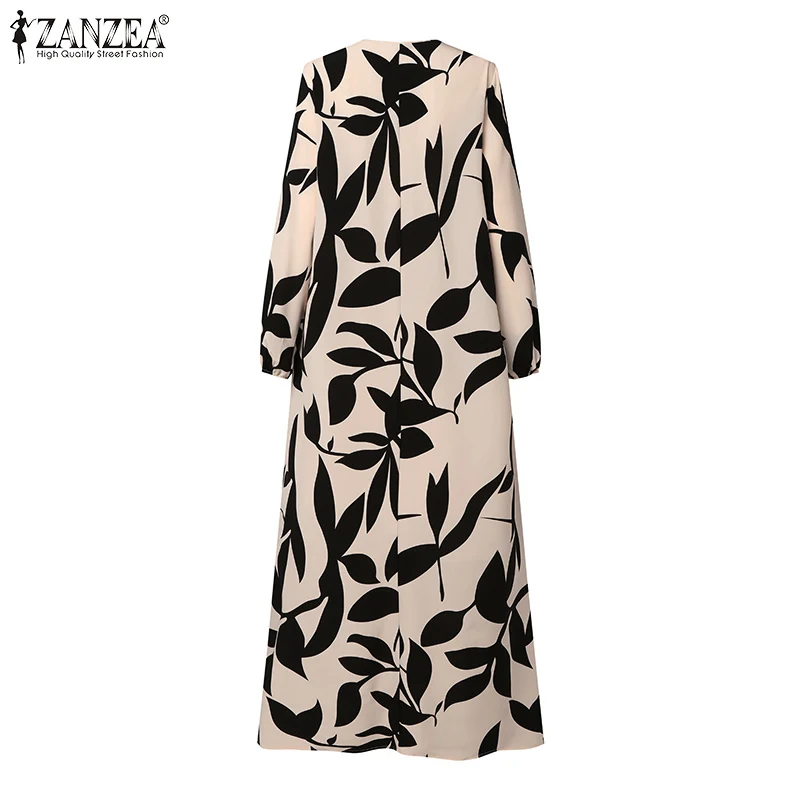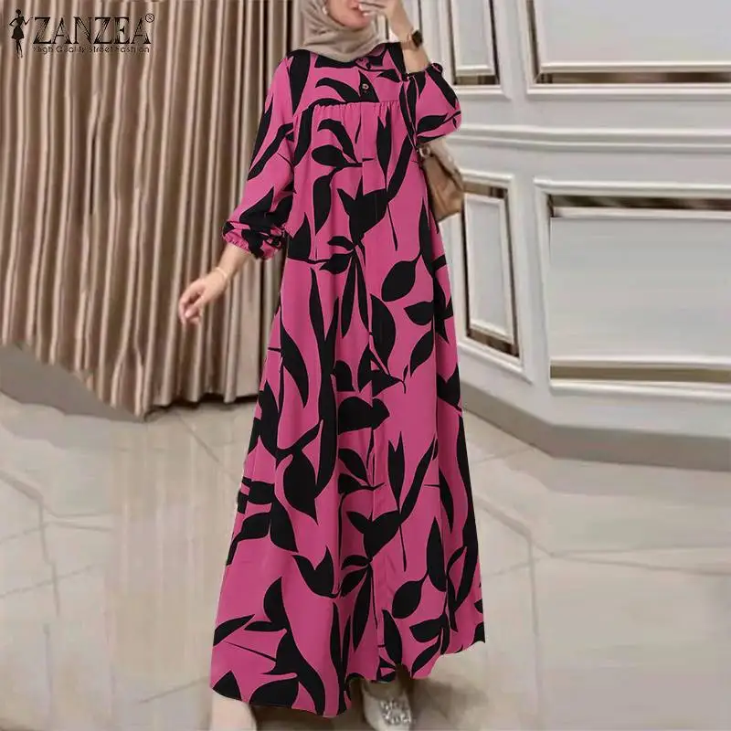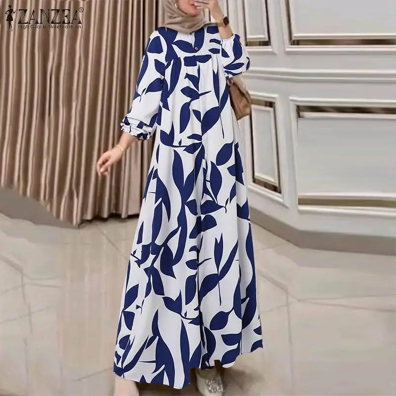 ZANZEA Autumn Floral Print Muslim Dress Fashion Women Long Sleeve Loose Dubai Turkey Abaya Sundress Robe