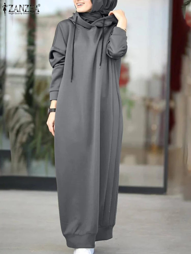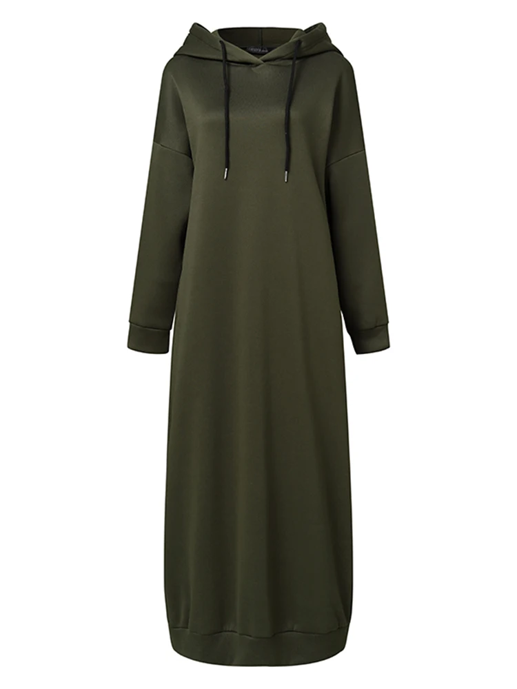 ZANZEA Casual Women's Dresses Autumn Winter Dress 2024 Trend Hoodies Long Sleeve Sundress Solid Loosse Long Sweatshirt Vestido