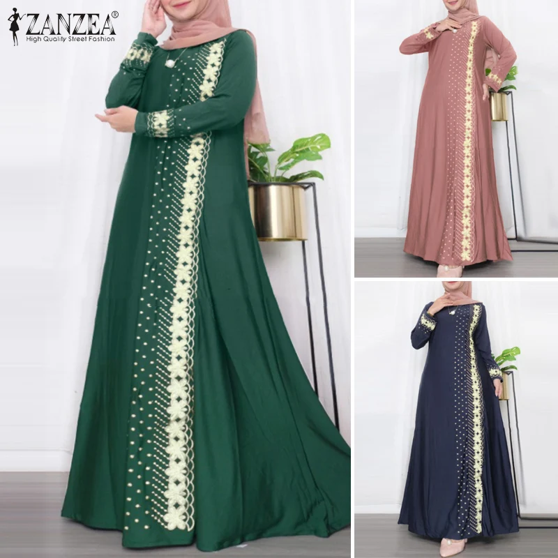 | Package included:1 Dress Material:95% Polyester+5% Spandex Colors:Dark Blue,Pink,Green Sleeve Length:Full Sleeve Neckline:O-Neck Pattern:Floral Prints Length:Ankle Length Buckle chain:Buttons on the back Thickness:Thin Style:Leisure,Bohemian,Retro,Europe,National,Muslim Dress Abaya Kaftan Season:Spring,Summer,Autumn,Winter Occasion:Family,Party,Beach,Wedding,Holiday,Employment Label: Yes Attentions: 1.The Real Object May Exist Slightly Colors Differences Compared To Images As Different Computers Display.Caution If Minding,Thanks. 2.There Might Be A Manual Measuring 1-3 cm Error.Sorry For Any Inconvenience. 3.Please Prevail On Real Item, Model Images For Reference Only. 4.Attention!!!Please check the size chart carefully before placing the order.
