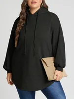 Plus Size New Women's Fashionable Hooded Ladies Long Sleeved Casual Solid Color Printed Pullover Hoodie
