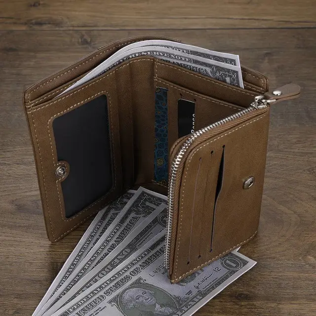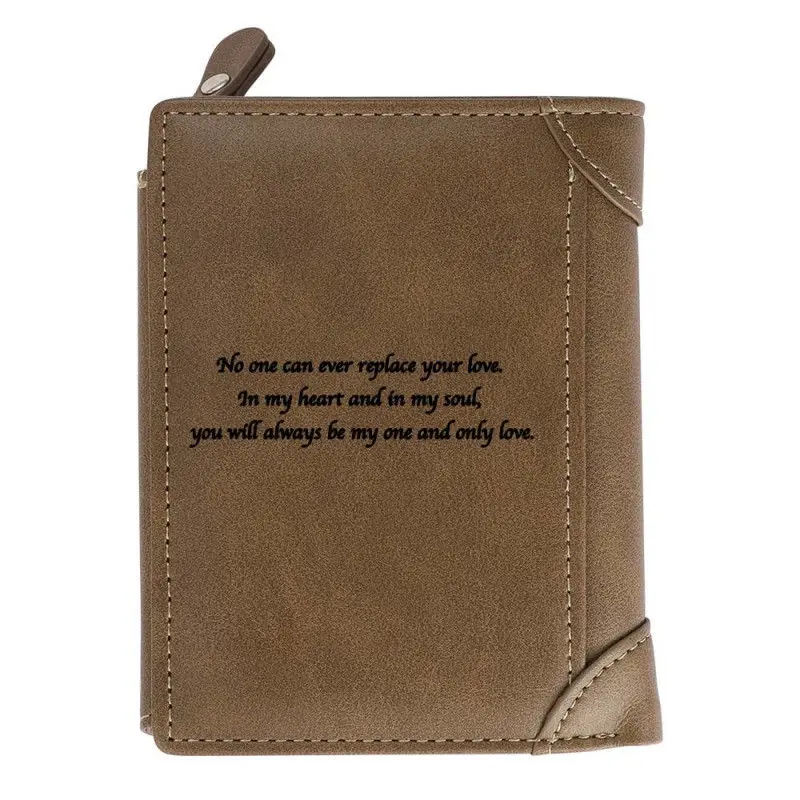 Zciti Custom Photo Engraved Wallet PU Leather Brown Multi-card Three-Fold Vertical Wallet Thin Section