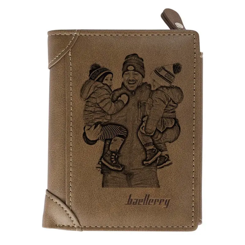 Zciti Custom Photo Engraved Wallet PU Leather Brown Multi-card Three-Fold Vertical Wallet Thin Section Buckle Father's Day Gifts