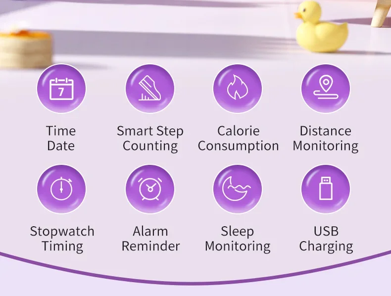 Additional functions: alarm clock, date, countdown, 24-hour indication, day of the week display, step count, calories