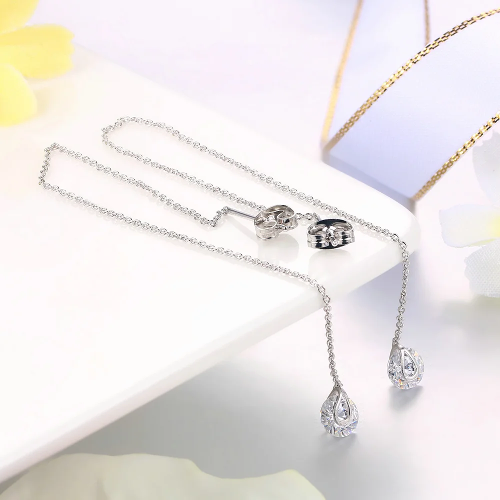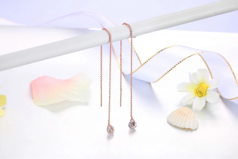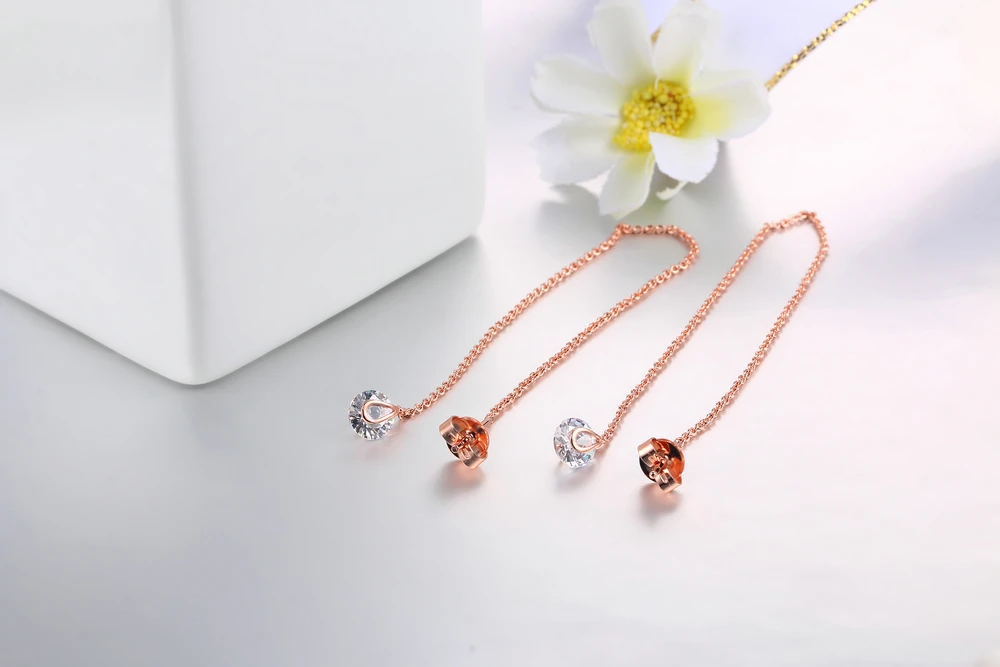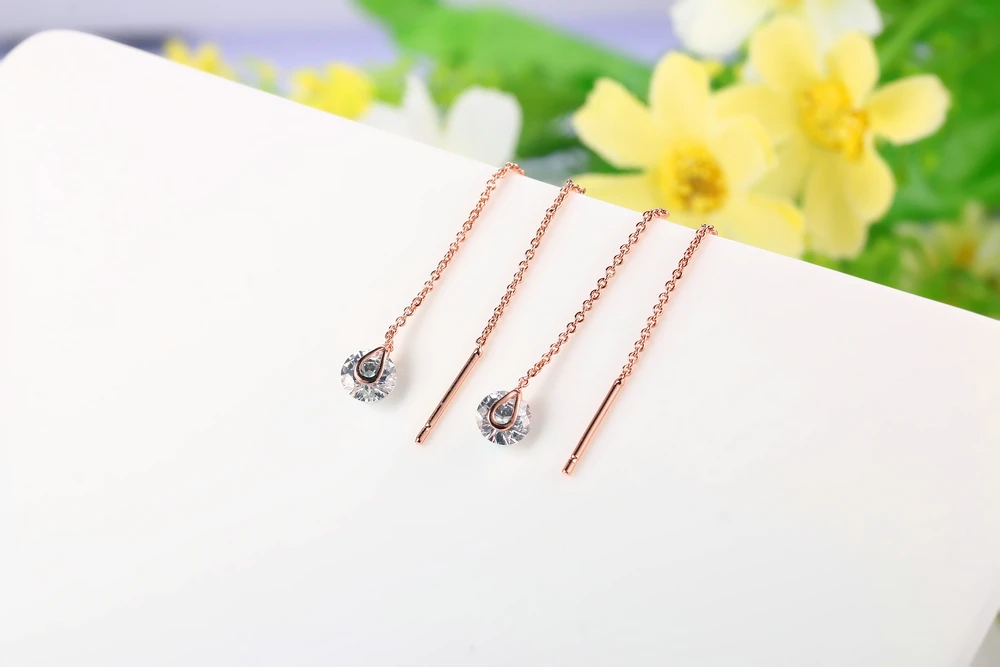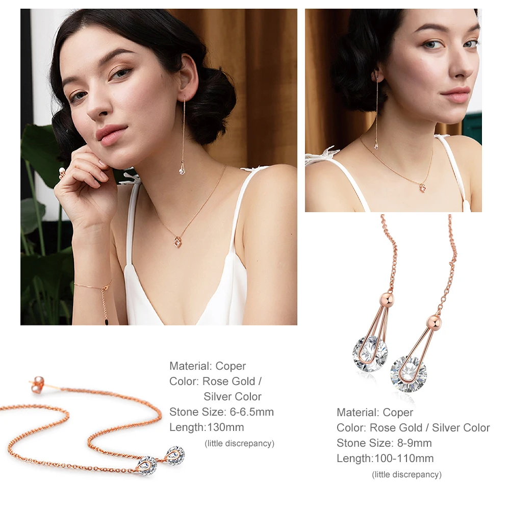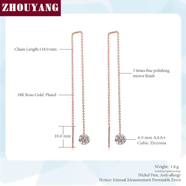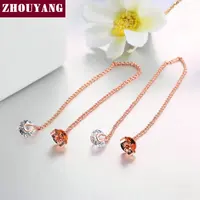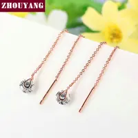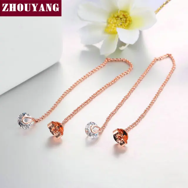 ZHOUYANG Chain Earring For Women 6mm Cubic Zirconia 11CM Length Ear Line Rose Gold Color Fashion Jewelry Gift ZYE549 ZYE100