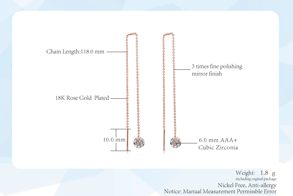 Be the first to review “ZHOUYANG Chain Earring For Women 6mm Cubic Zirconia 11CM Length Ear Line Rose Gold Color Fashion Jewelry”