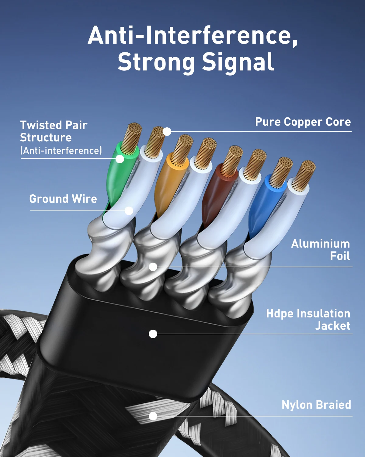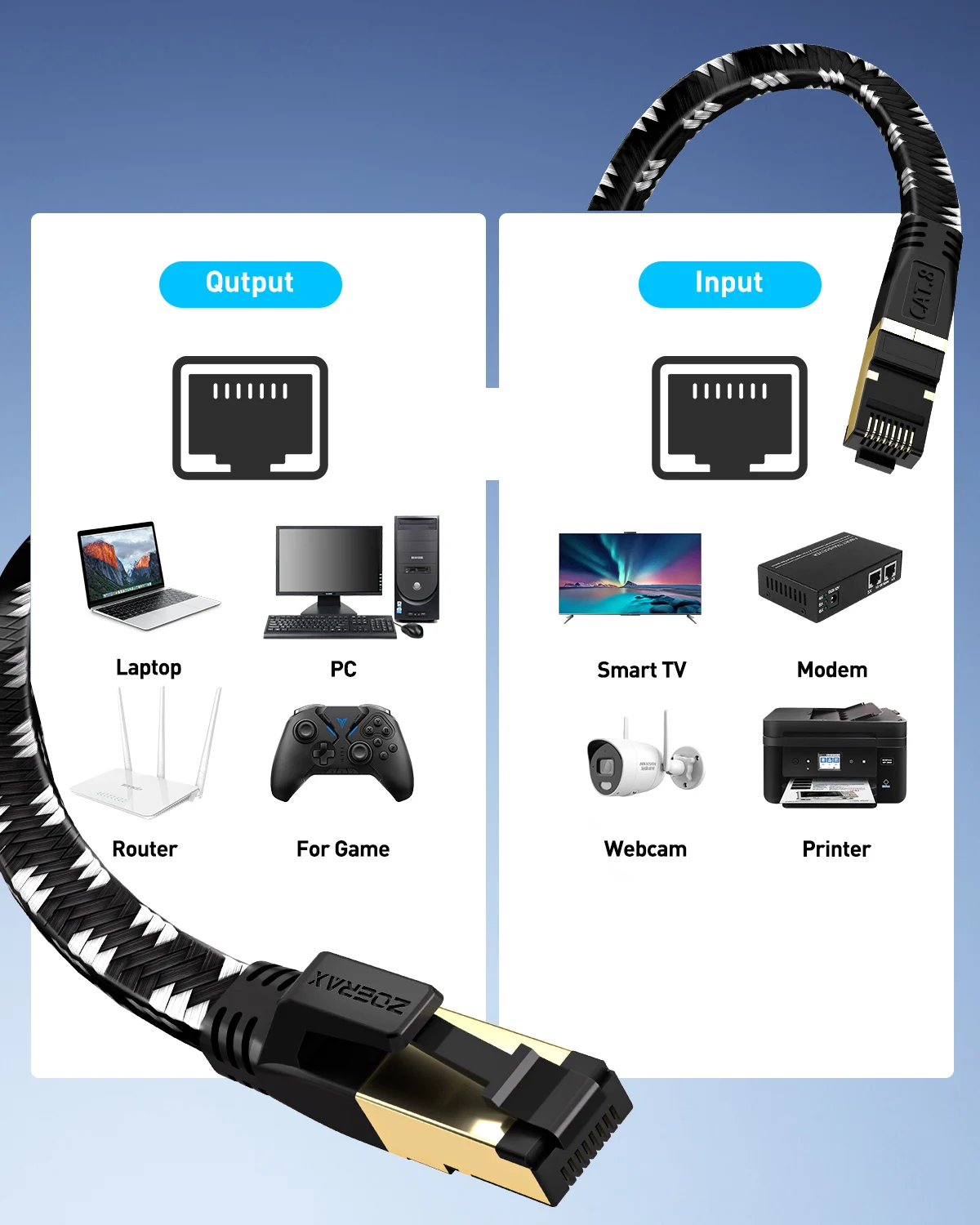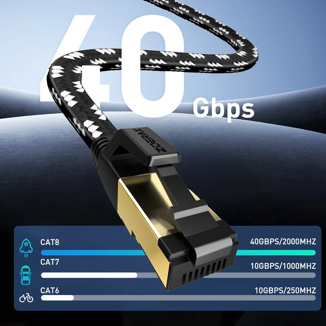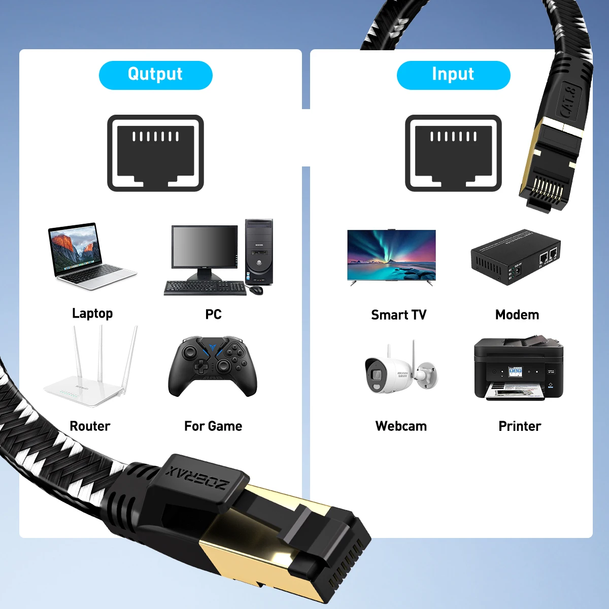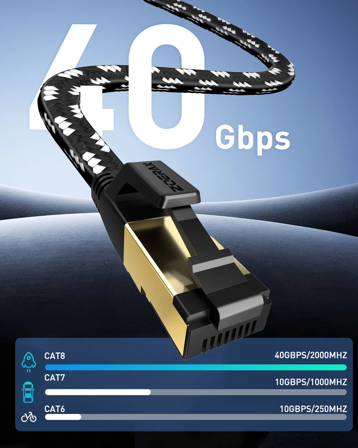 ZoeRax Cat8 Ethernet Cable 40Gbps 2000MHz Cat 8 RJ45 Network Lan Patch Cord for Router Modem Internet